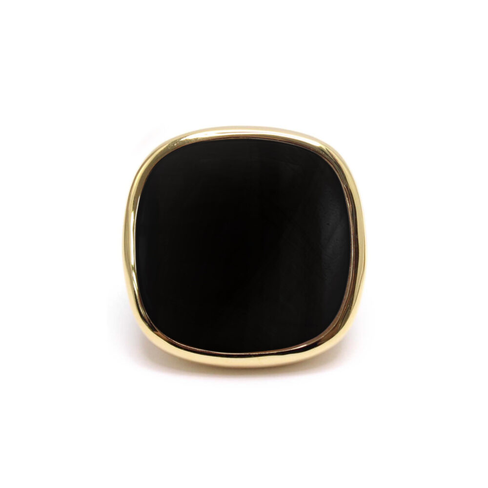 Bague à volume carrée en argent doré et pierre naturelle spinelle noire