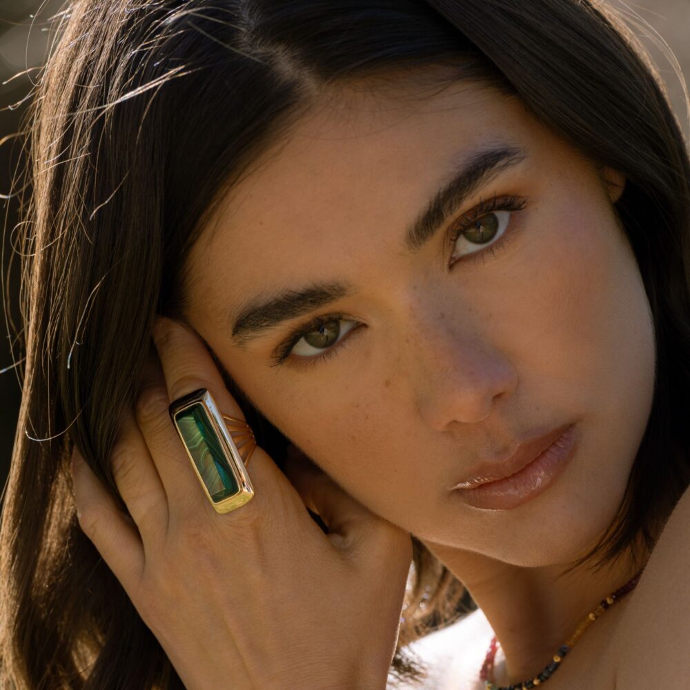 La bague à volume en argent doré longue en pierre naturelle malachite est un bijou élégant et raffiné qui saura ajouter une touche de sophistication à votre tenue. Sa pierre naturelle malachite de couleur vert intense apporte une touche de fraîcheur et d’originalité à votre style. Fabriquée en argent 925/1000, cette bague de qualité supérieure est le choix parfait pour les femmes à la recherche d’un accessoire chic et tendance.