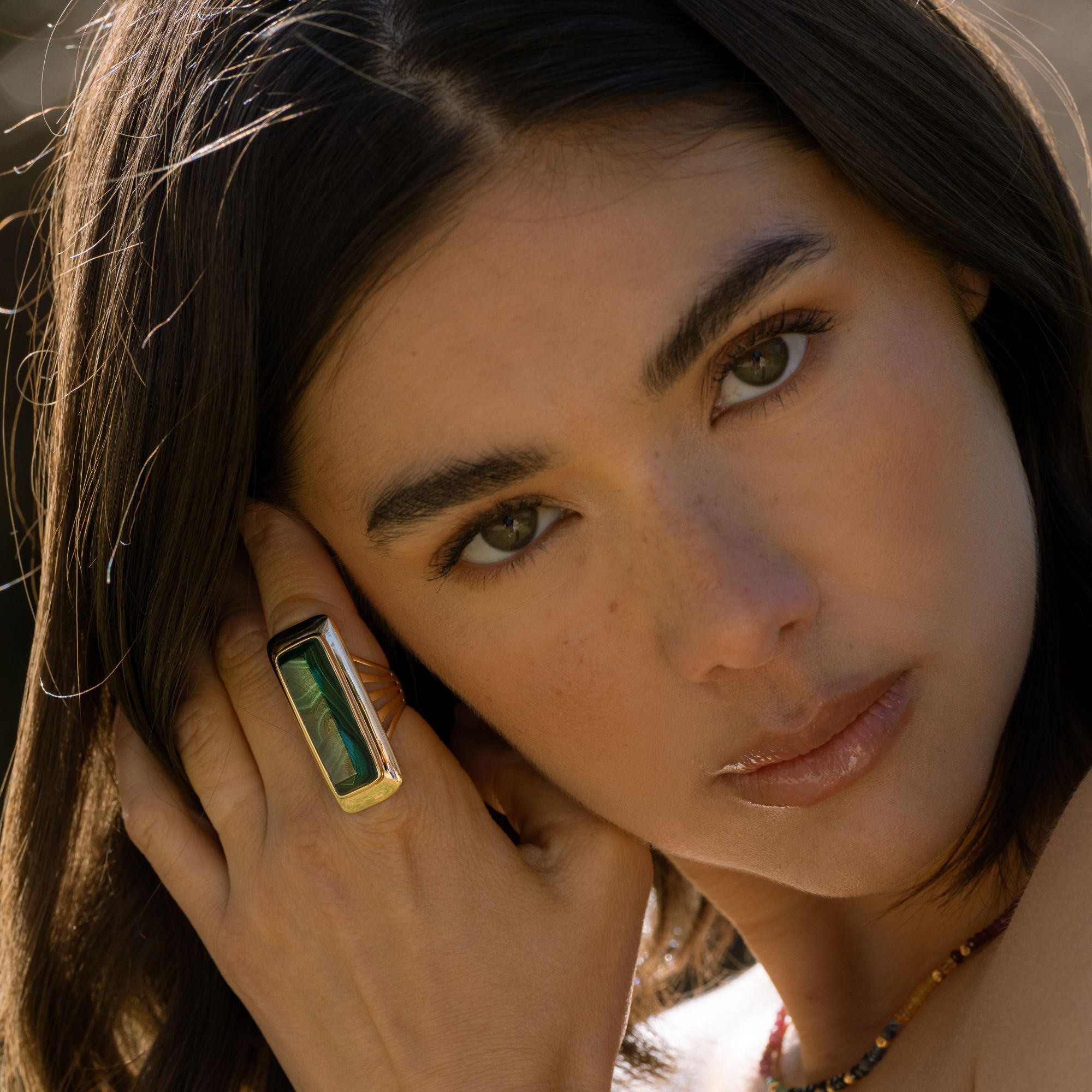 Cette bague à volume en argent doré longue est un accessoire intemporel qui traversera les saisons avec style. Sa couleur dorée apporte une touche de glamour à votre look, tandis que sa pierre naturelle malachite ajoute une dimension unique et authentique à votre style. Que ce soit pour une soirée élégante ou une journée décontractée, cette bague saura vous accompagner avec élégance et raffinement.