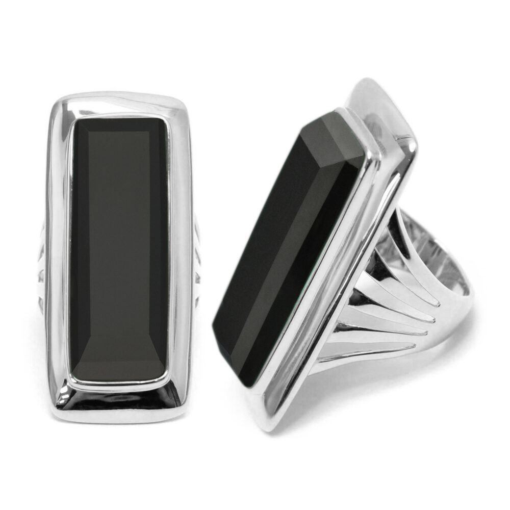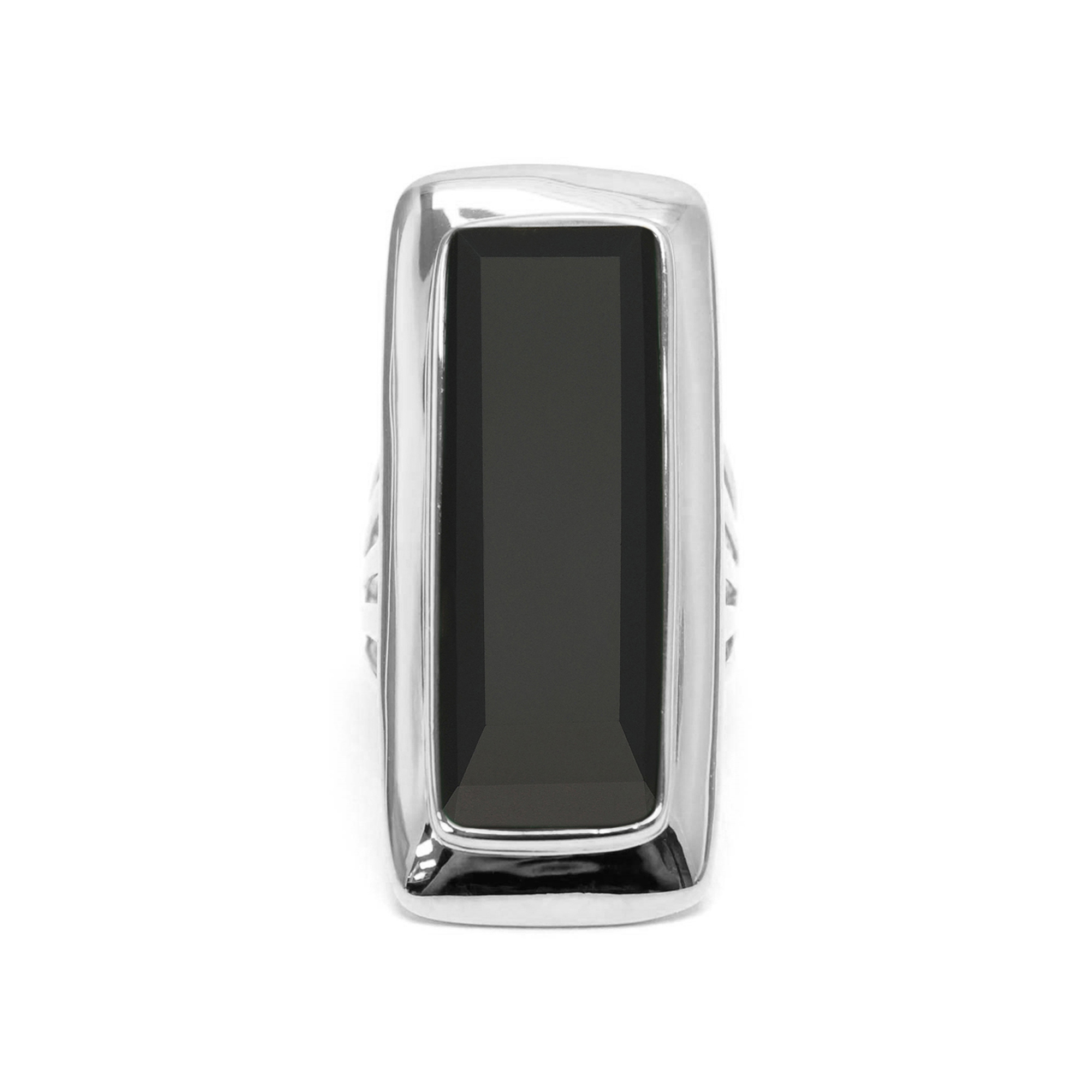 Bague à volume en argent rhodié longue en pierre naturelle spinelle noire