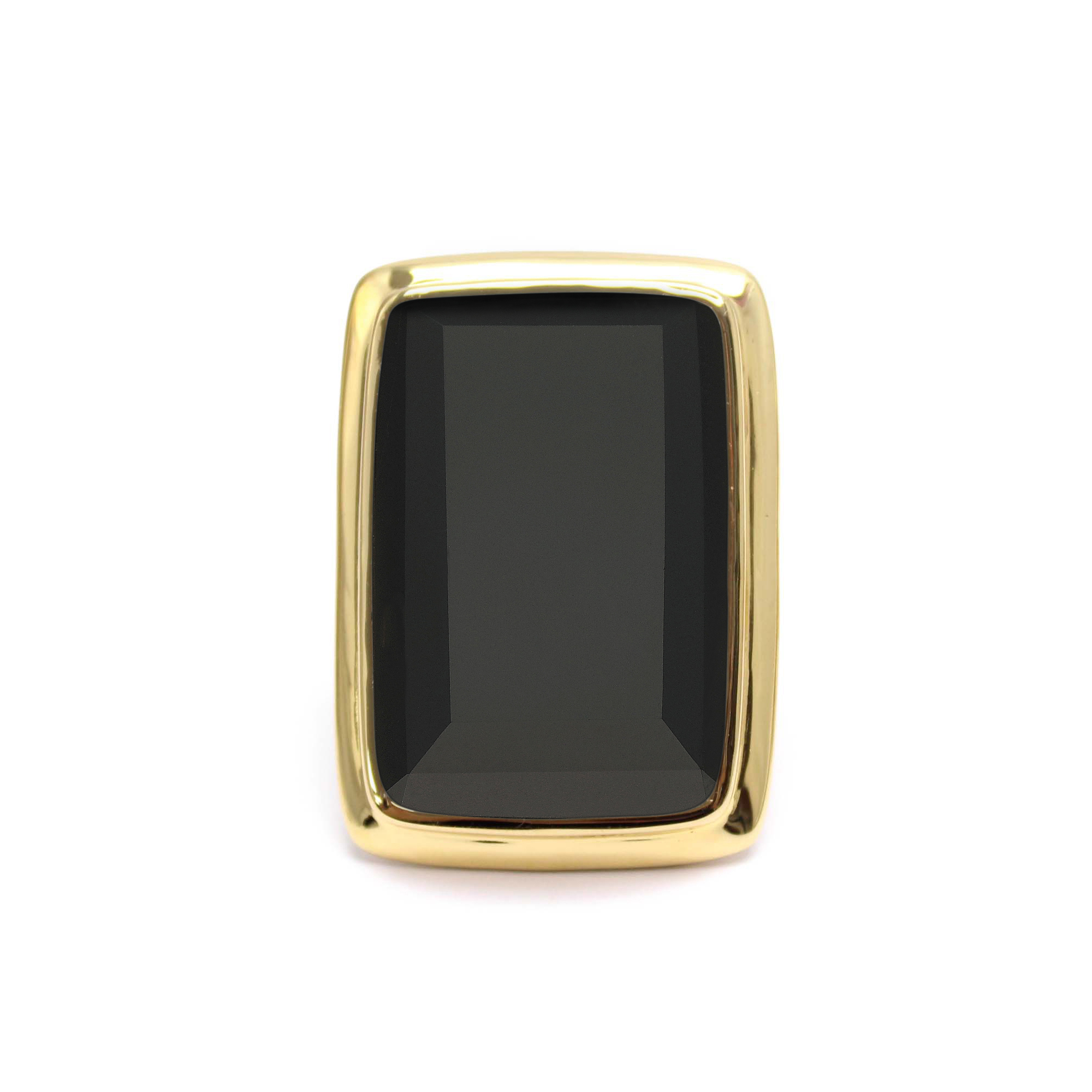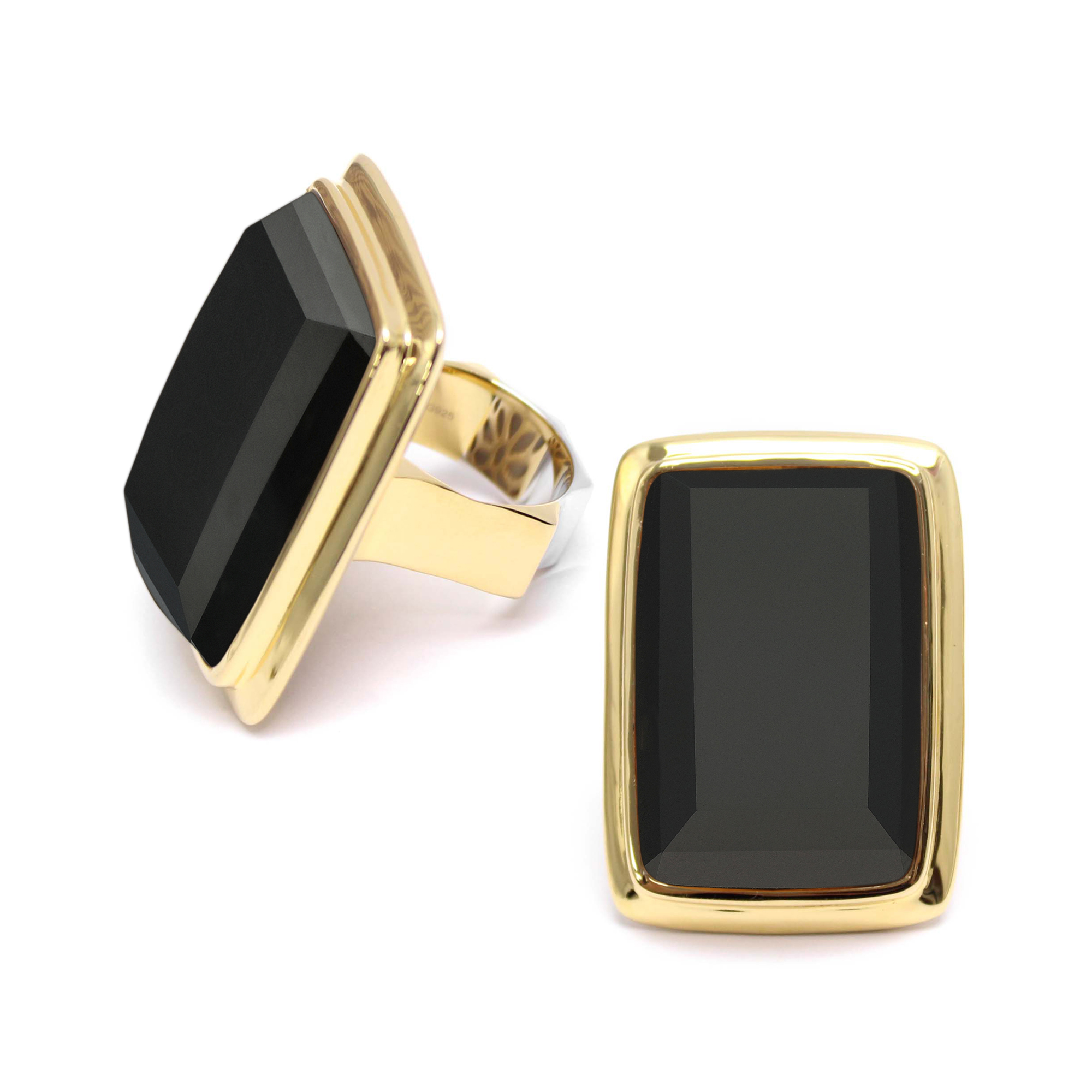 Bague à volume rectangle en argent doré et pierre naturelle spinelle noire