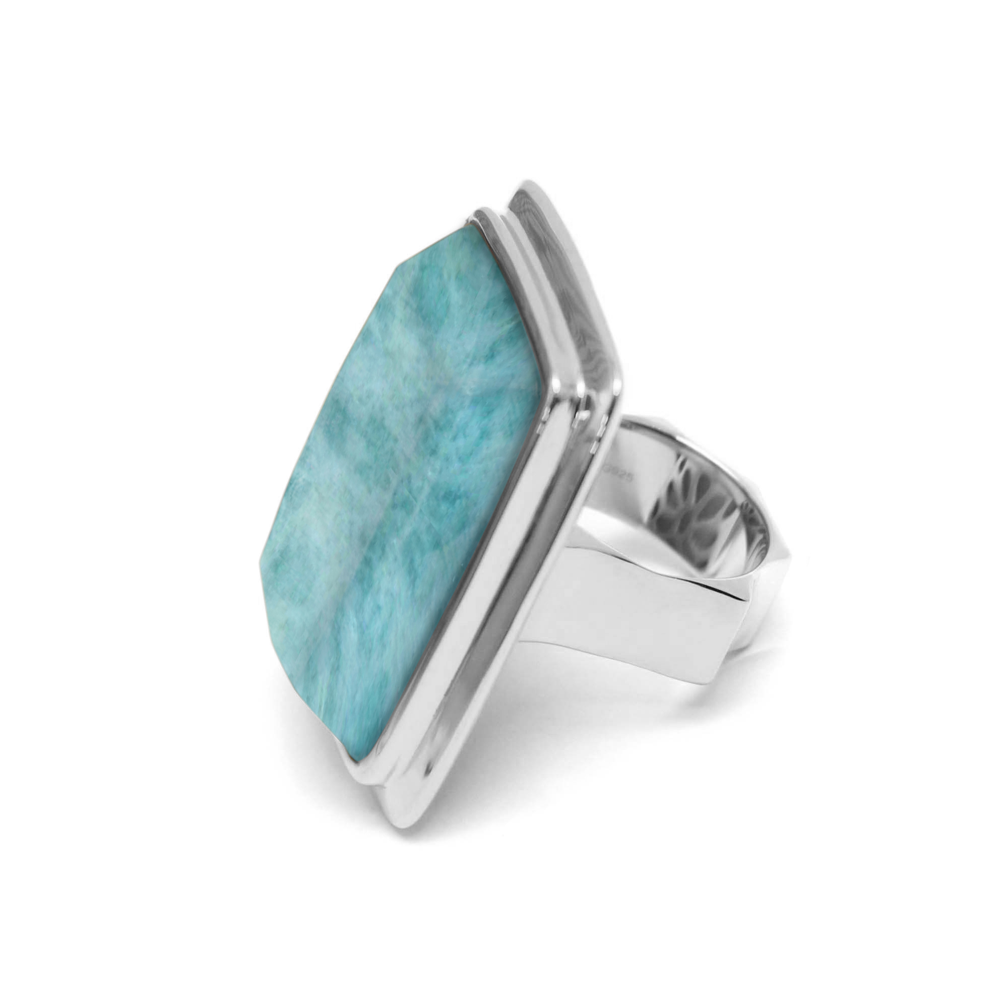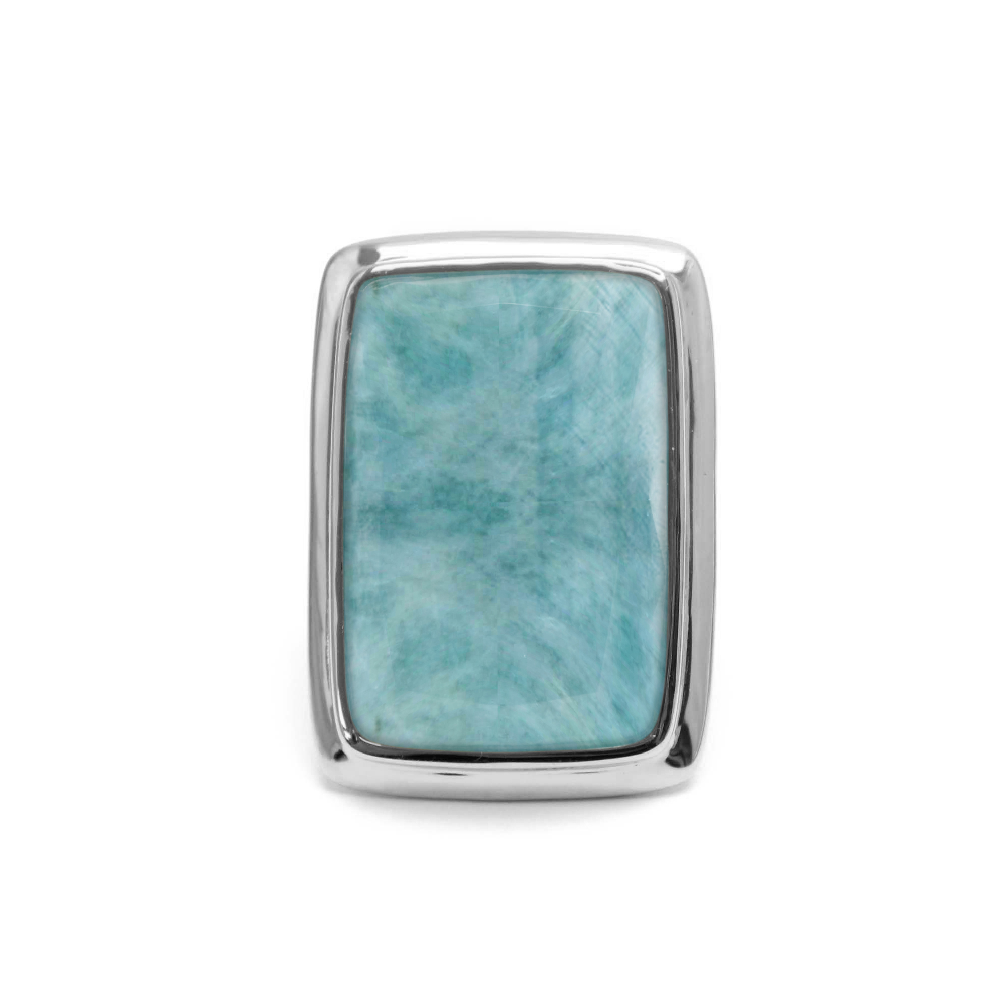 Sublimez votre look avec la bague à volume rectangle en argent et pierre naturelle amazonite