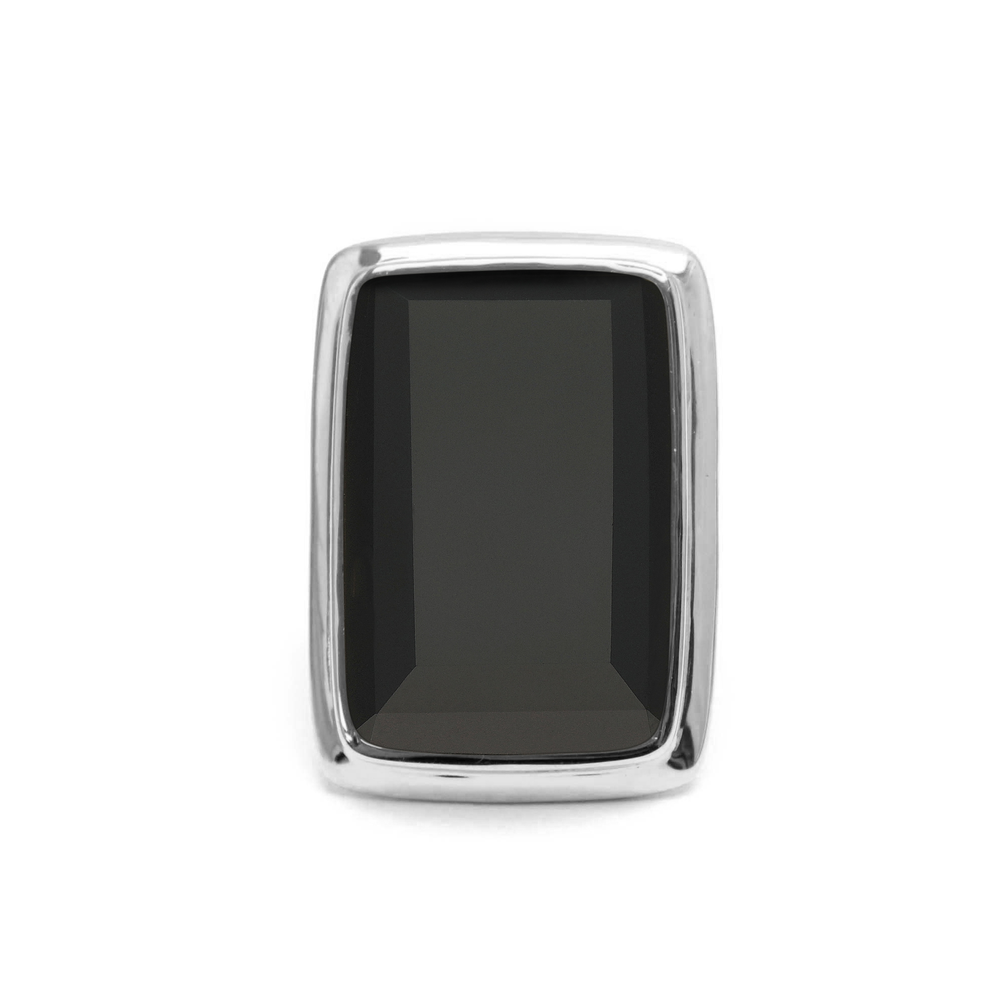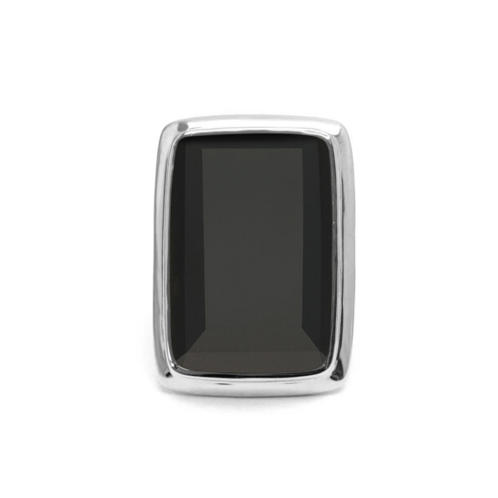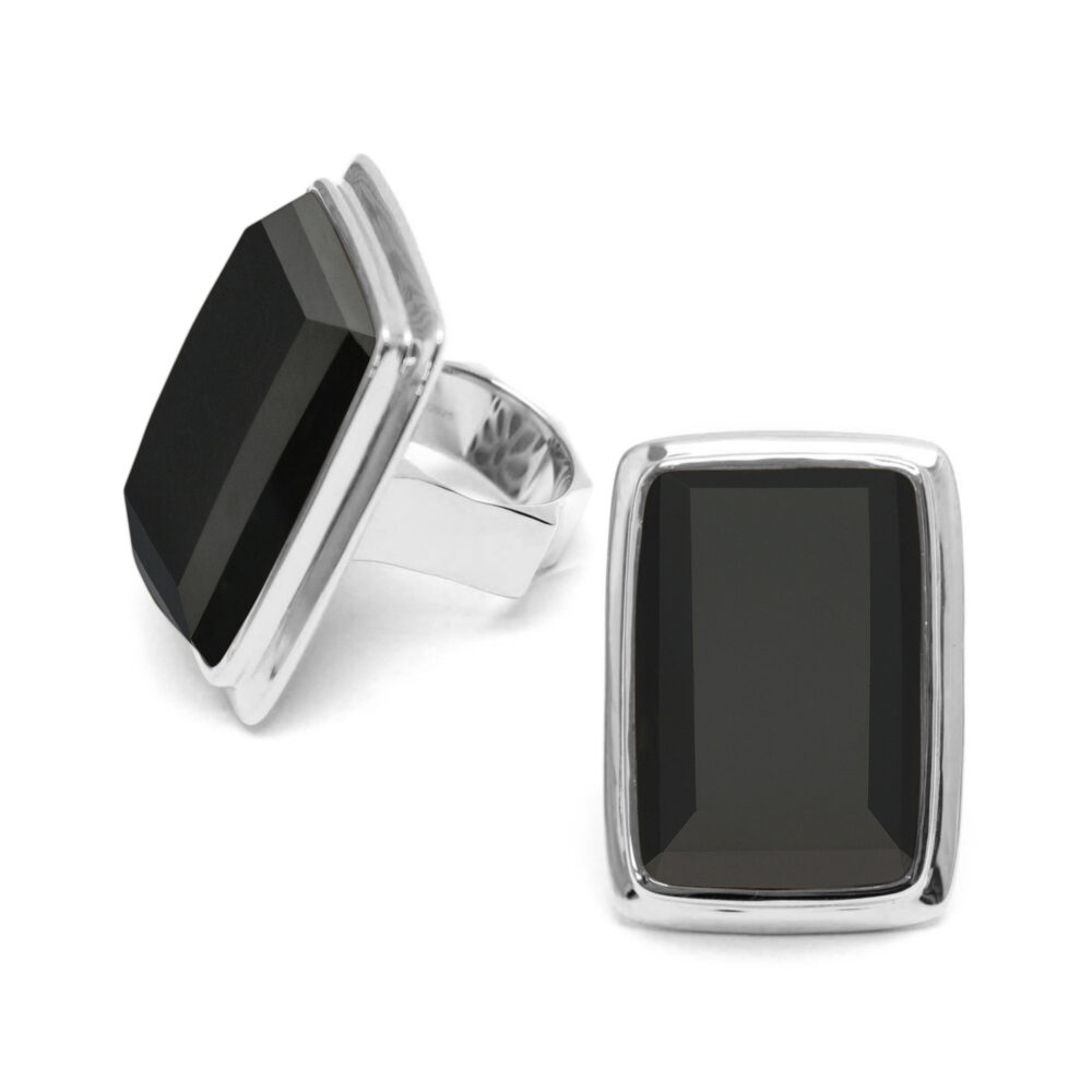 Bague à volume rectangle en argent rhodié et pierre naturelle spinelle noire