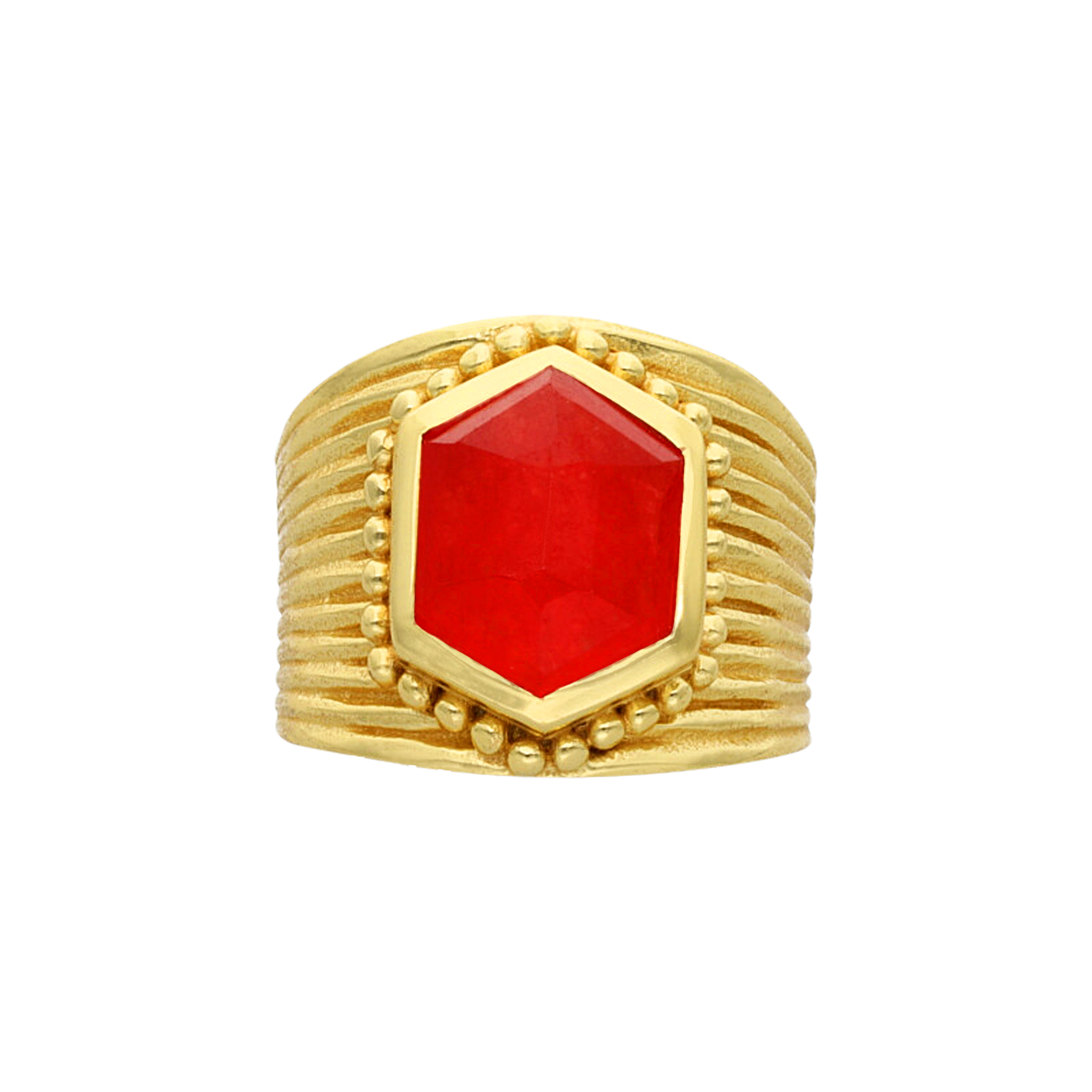 Bague argent doré antique pierre naturelle jade rouge