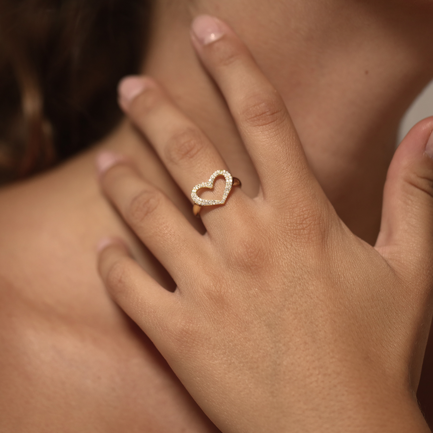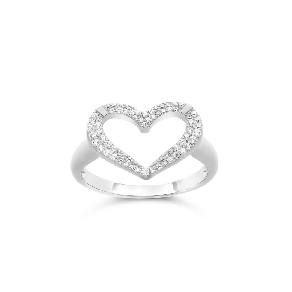Bague argent rhodié cœur serti de pierres blanches