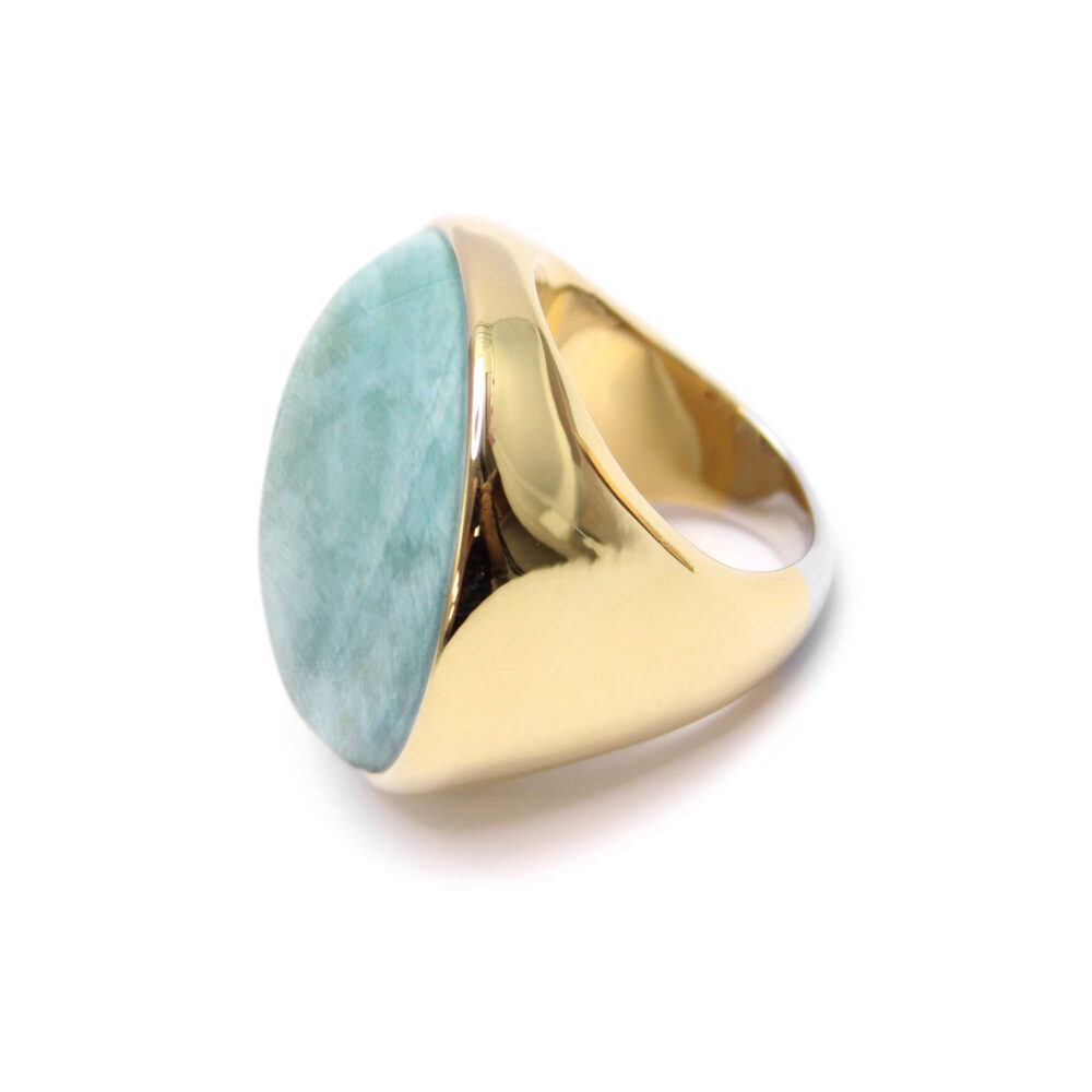 Sublimez votre style avec la bague cabochon luxe en argent doré et pierre naturelle amazonite