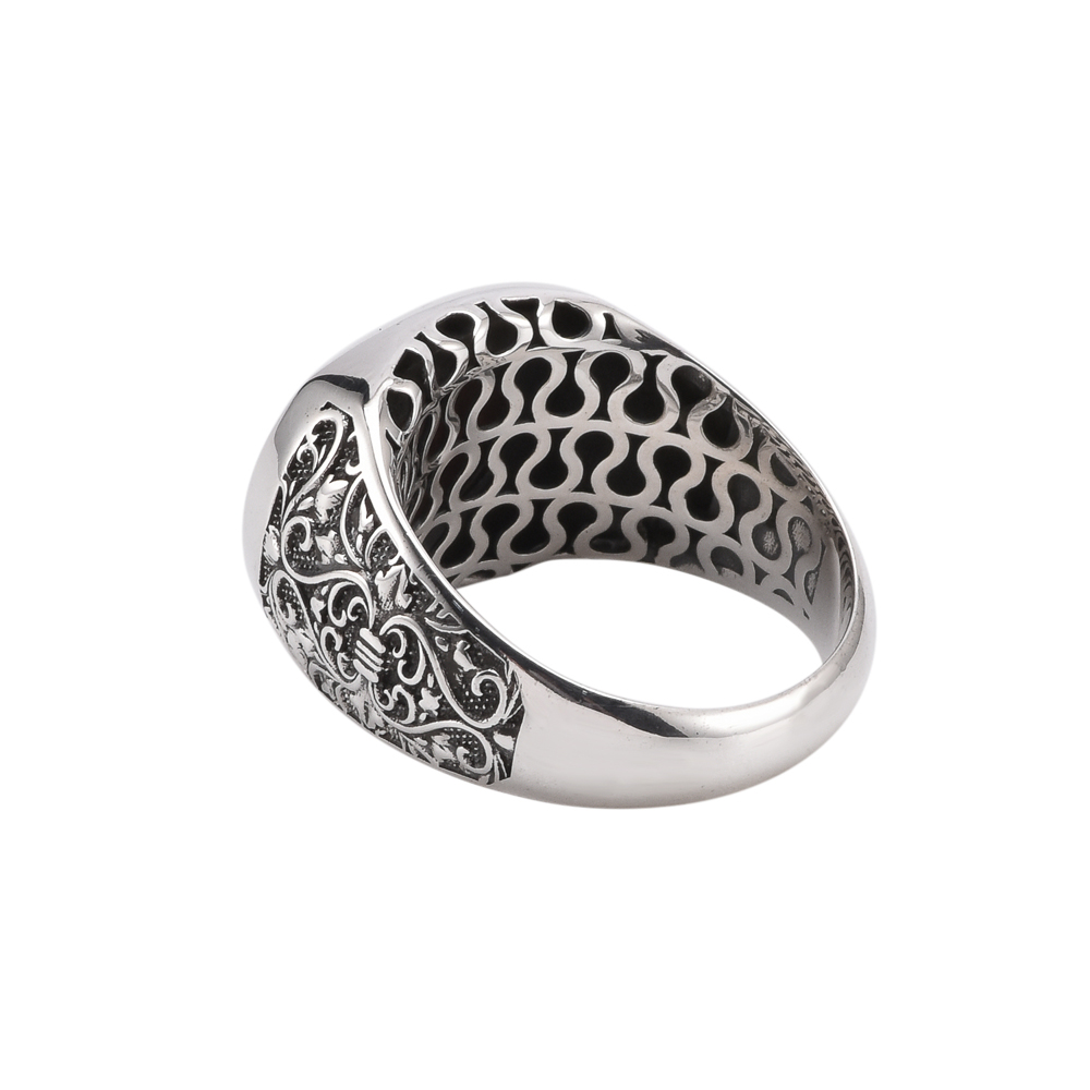 Tout dans cette bague homme argent a été pensé pour obtenir une finition digne de grande marque. Elle est en effet sertie de gravure en forme de lys, la fleur de la royauté, de quoi lui procurer un cachet sans pareil. Pour atténuer l’effet trop antique de la pièce, les joaillers ont opté pour l’œil de tigre rouge, une pierre connue pour sa beauté mais aussi pour ses nombreuses vertus ayurvédiques. Contrairement aux modèles de chevalière en argent sterling habituels, celui-ci est moins imposant, pour un port plus discret, mais toujours aussi chic.