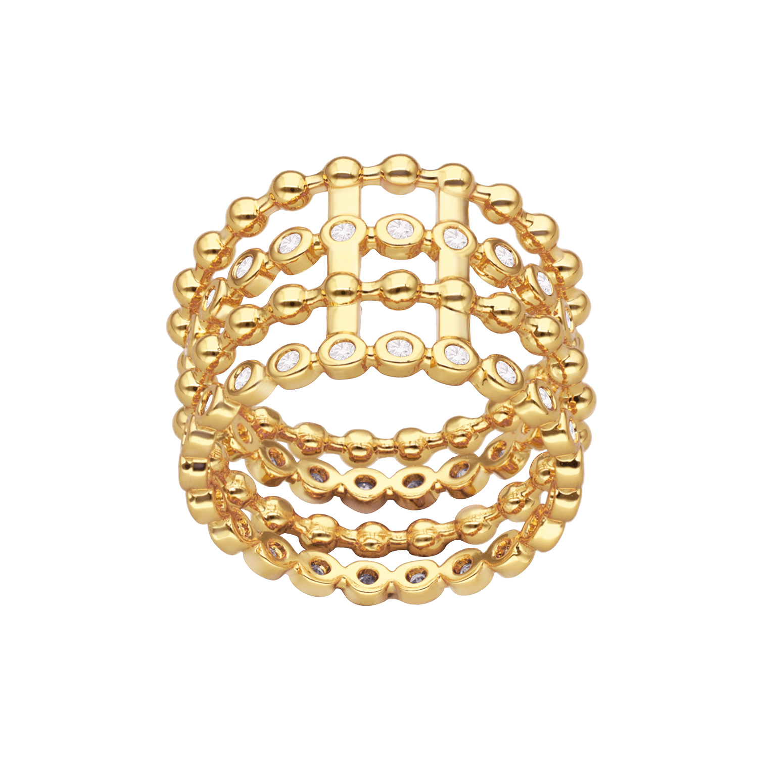 Bague dorée multi anneaux de cercles sertis – Image 2