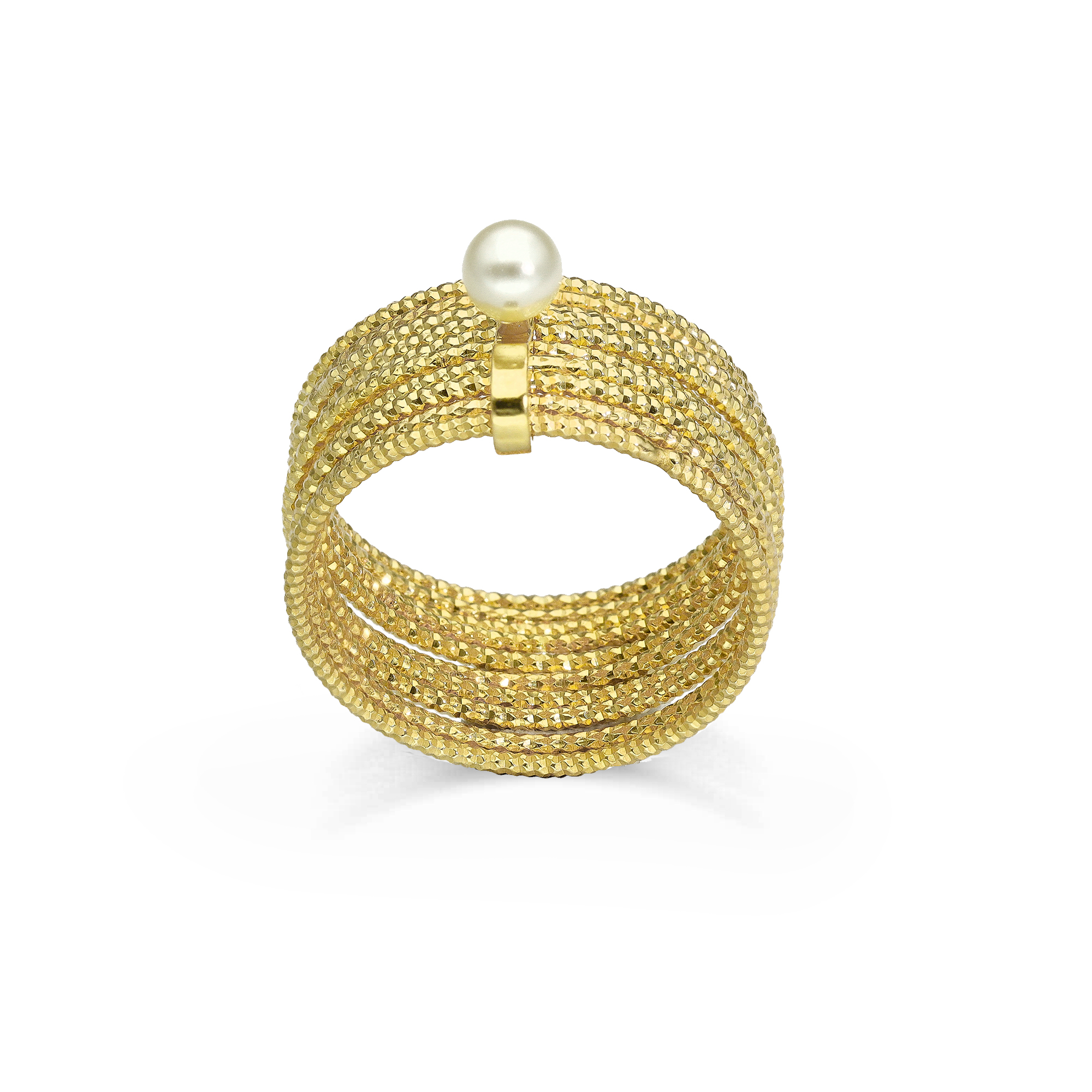 Bague en argent doré multi cercles avec perle