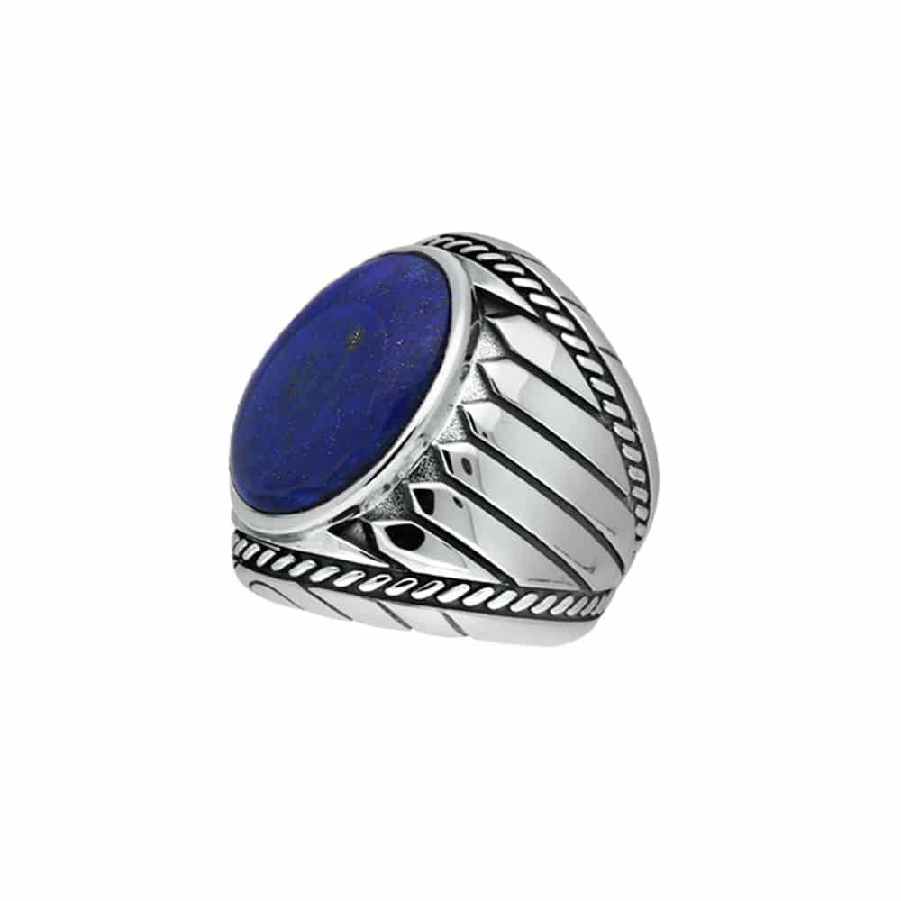 Son design a été pensé pour se démarquer, mais en subtilité. Sa pierre lapis bleu est tout en sobriété et fixée sur une base ornée de gravures ethniques. Le mariage de la parure à couleur bleu et l’anneau en argent procure une finition esthétique et discrète, parfaite pour un homme de goût.