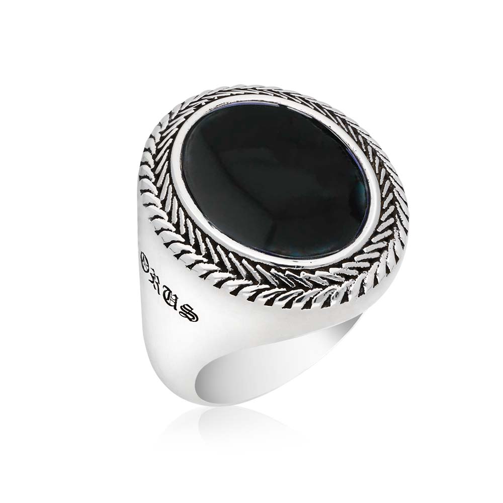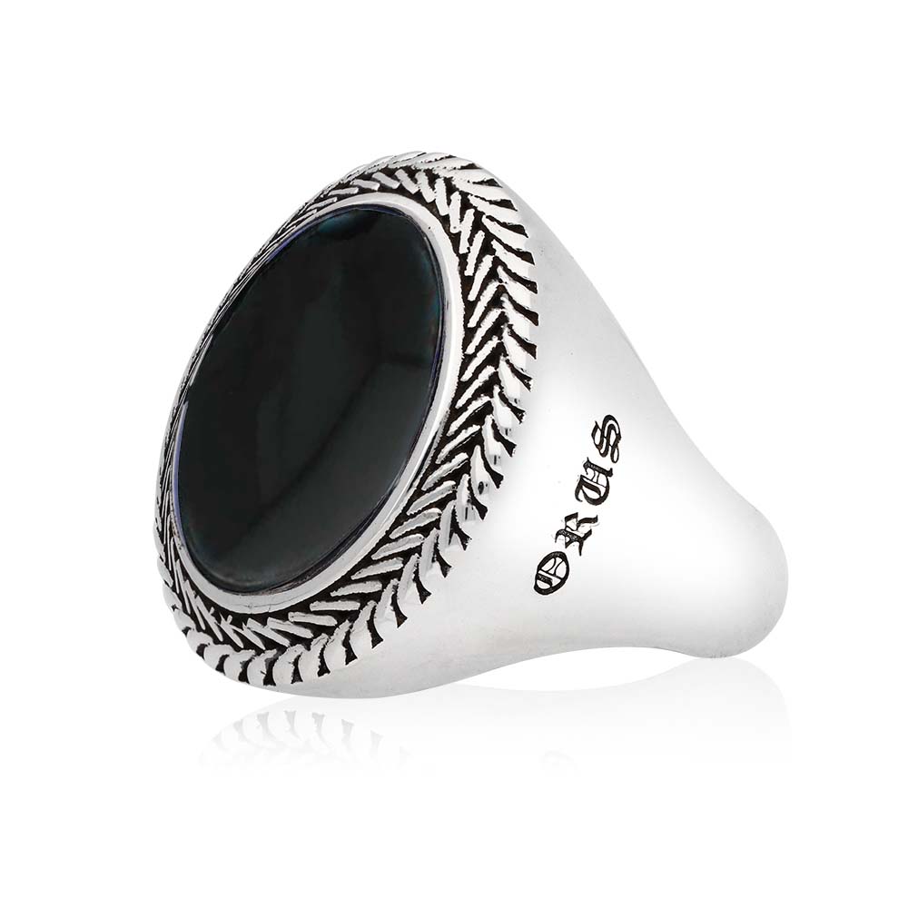 La chevalière est le TOP pour les grands hommes, démontrant un caractère plein d’ambition mais aussi d’estime en soi. Cette bague homme argent que nous proposons se démarque par la taille de la pierre dont elle est sertie. En effet, l’anneau homme est rehaussé d’un onyx noir imposante, qui donne tout son charme au bijou. Autour de la pierre, des gravures entourent le dessus de la bague, ce qui permet donne son côté luxe.