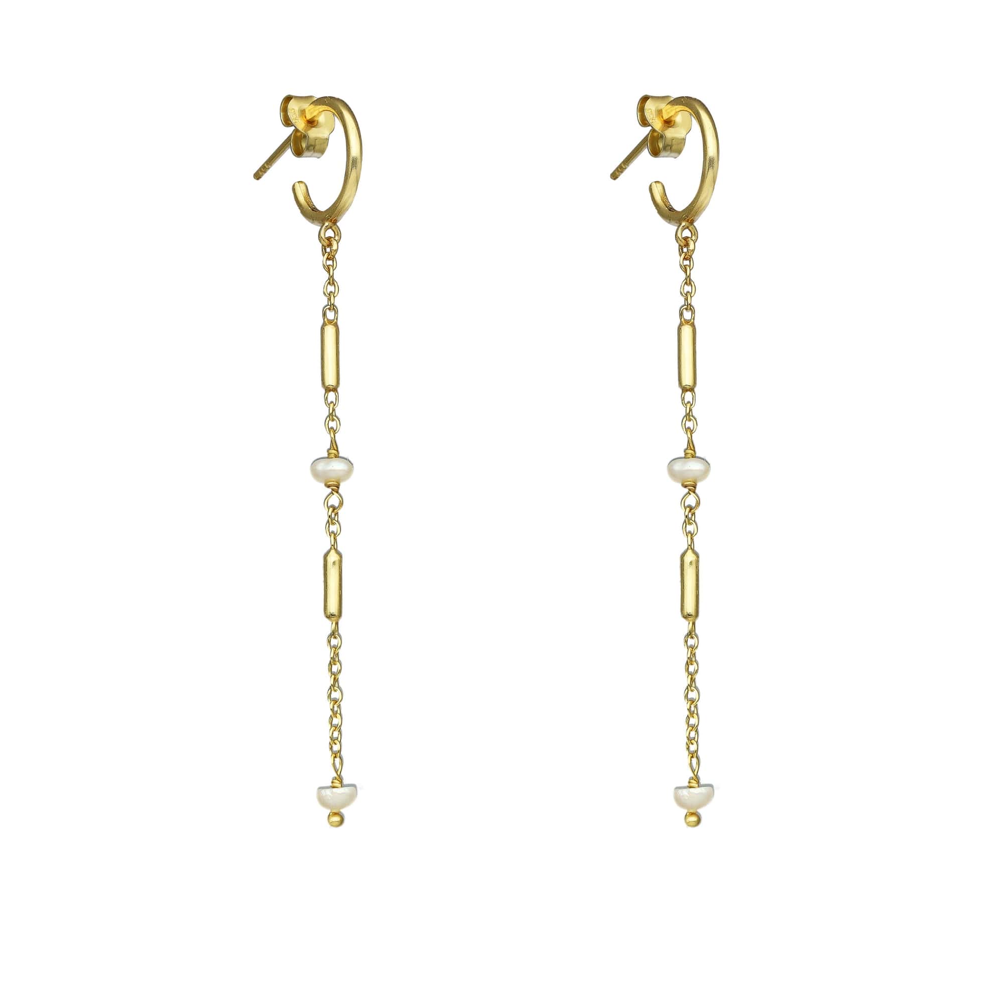 Description des boucles d’oreilles argent dorée barrettes et perles naturelles blanches