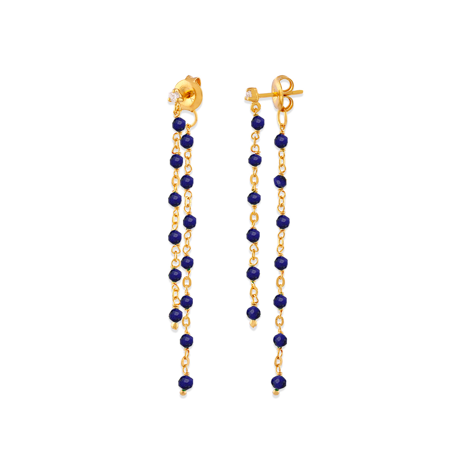 Découvrez nos boucles d’oreilles argent dorée double chaine longue et pierres naturelles lapis