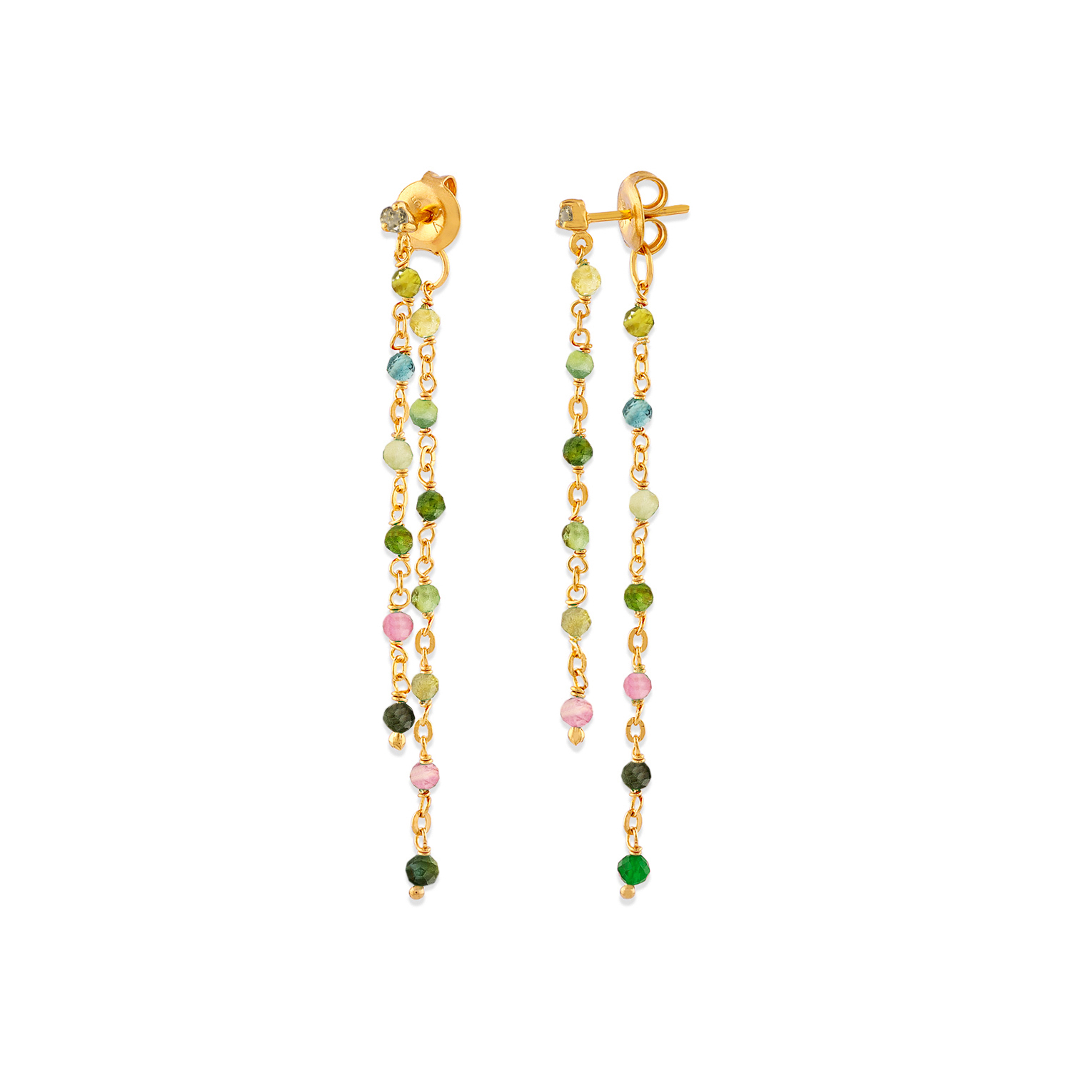 A la recherche de l’accessoire parfait pour sublimer votre tenue ? Découvrez nos boucles d’oreilles en argent doré, ornées de pierres naturelles tourmaline aux couleurs vibrantes. Fabriquées en argent 925/1000 de haute qualité, ces boucles d’oreilles pendantes apporteront une touche d’élégance et de sophistication à votre look. La double chaîne longue ajoute une dimension moderne et tendance à ce bijou raffiné.
