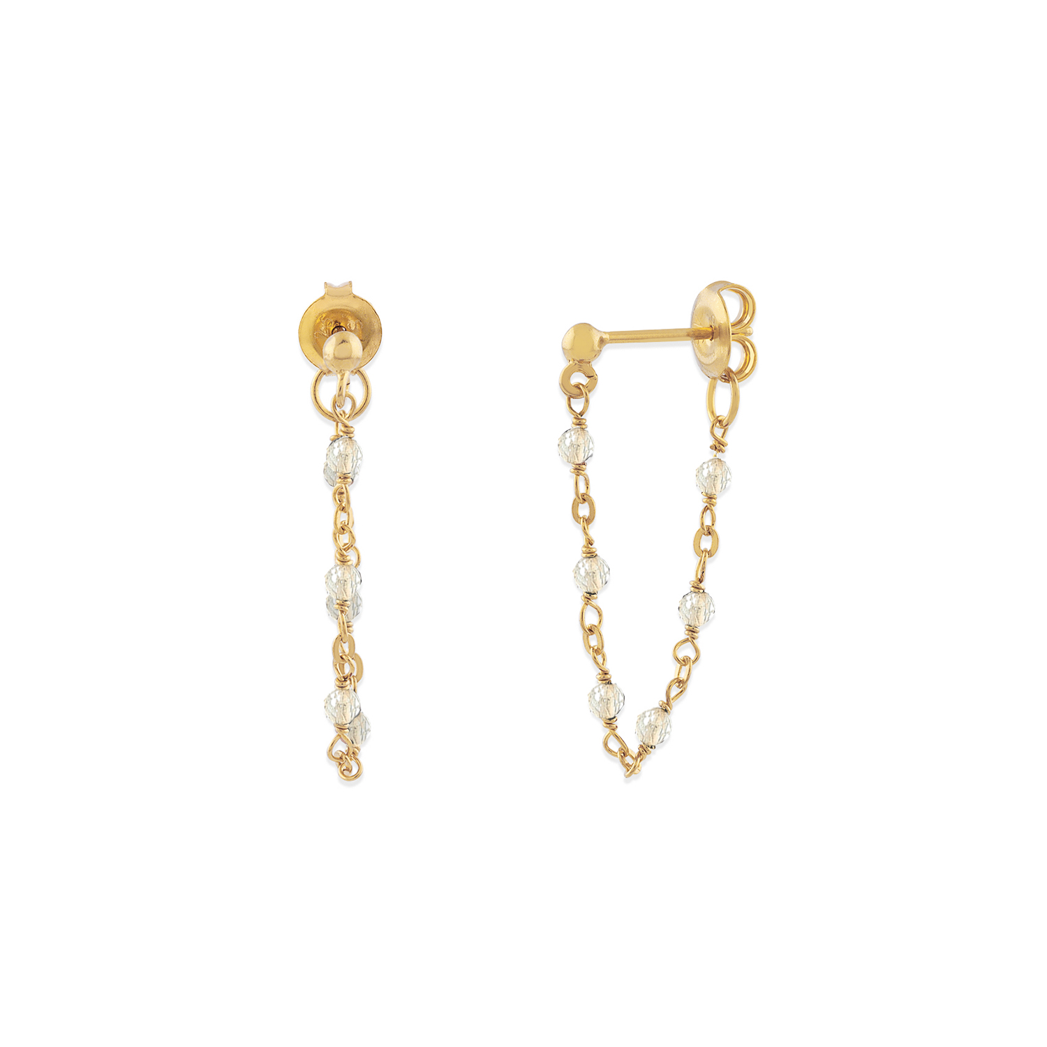 Boucles d’oreilles argent doré chaine et pierres naturelles blanche