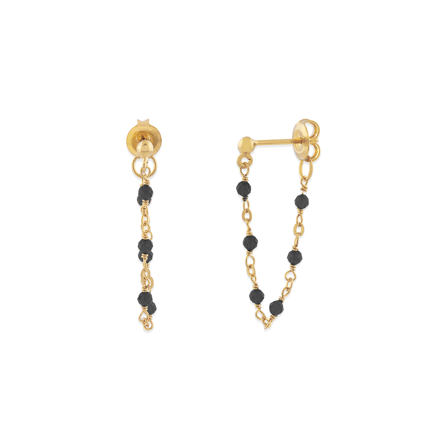 Boucles d’oreilles argent doré chaine et pierres naturelles noir : un bijou élégant et intemporel