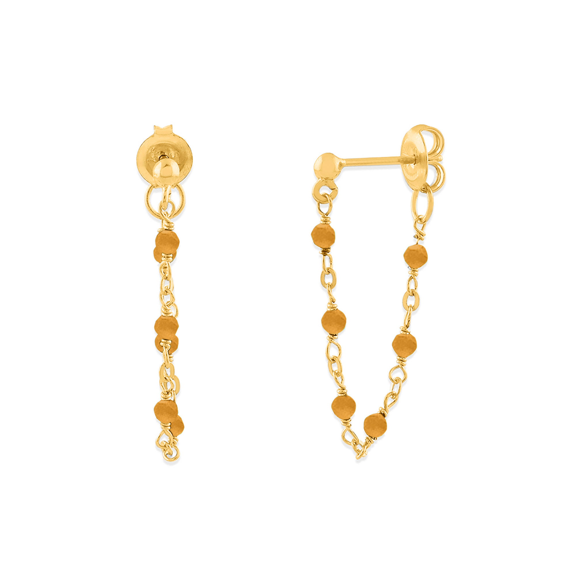 Boucles d'oreilles argent dorée chaine et pierres naturelles œil de tigre