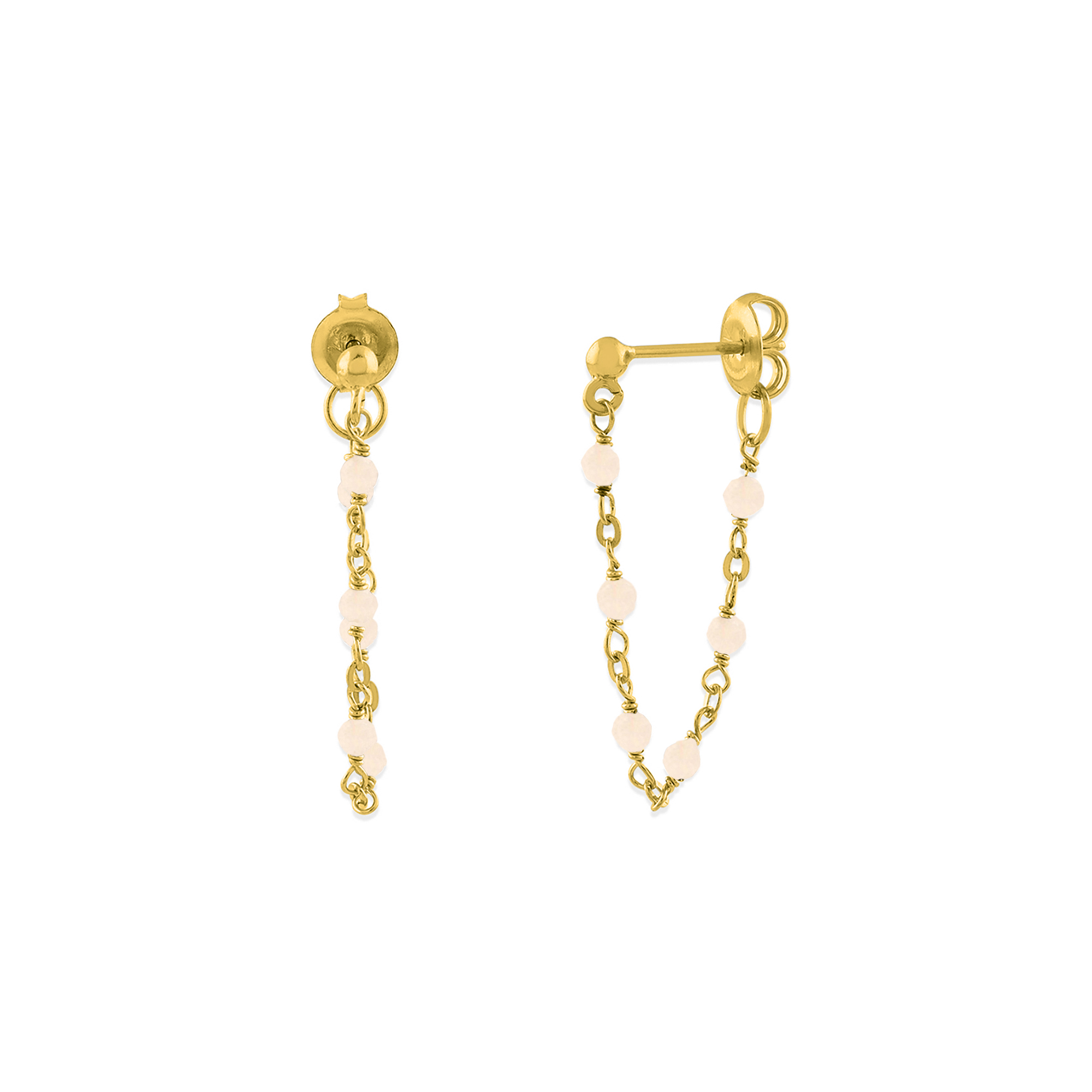 Boucles d’oreilles argent dorée chaine et pierres naturelles opale rose