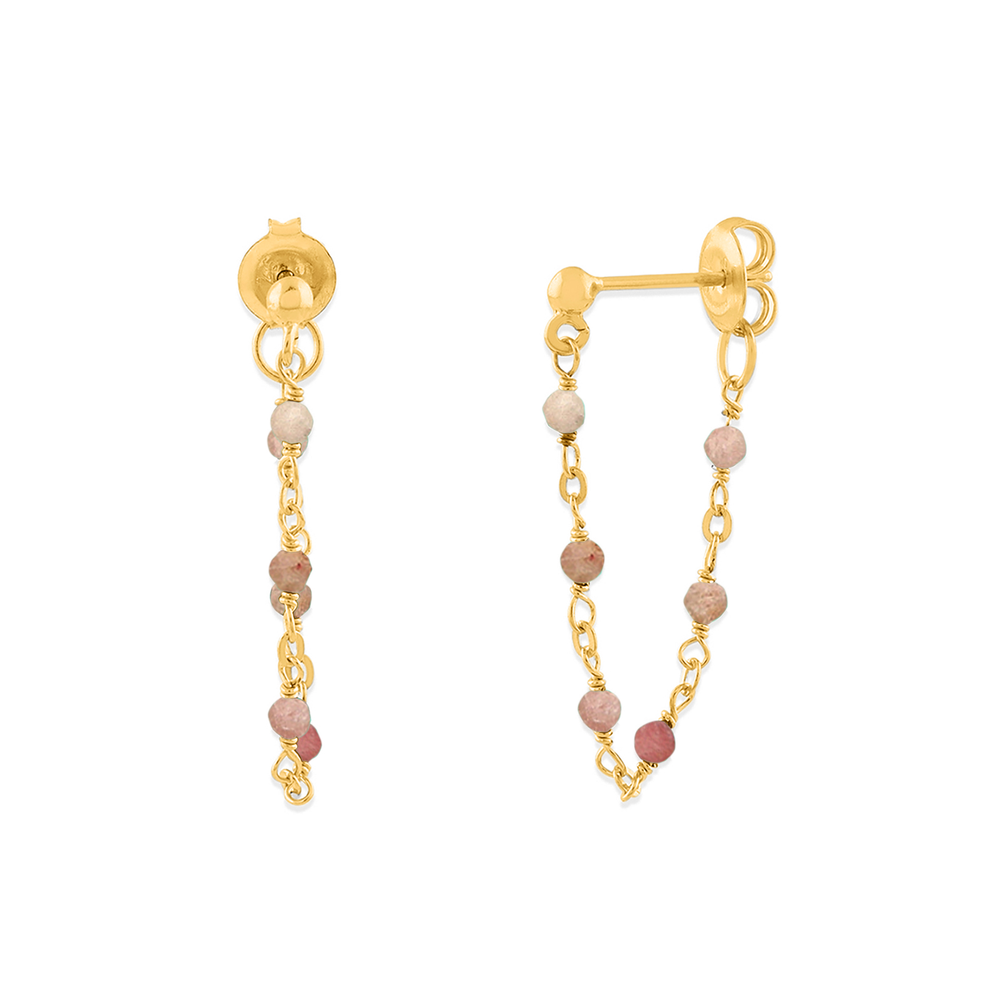 Les boucles d’oreilles en argent doré avec chaine et pierres naturelles quartz rose fraise sont un véritable bijou de la nature. La couleur rose des pierres naturelles apporte une touche de douceur et de féminité à votre tenue. Fabriquées en argent 925/1000, ces boucles d’oreilles sont à la fois élégantes et intemporelles, parfaites pour toutes les occasions.