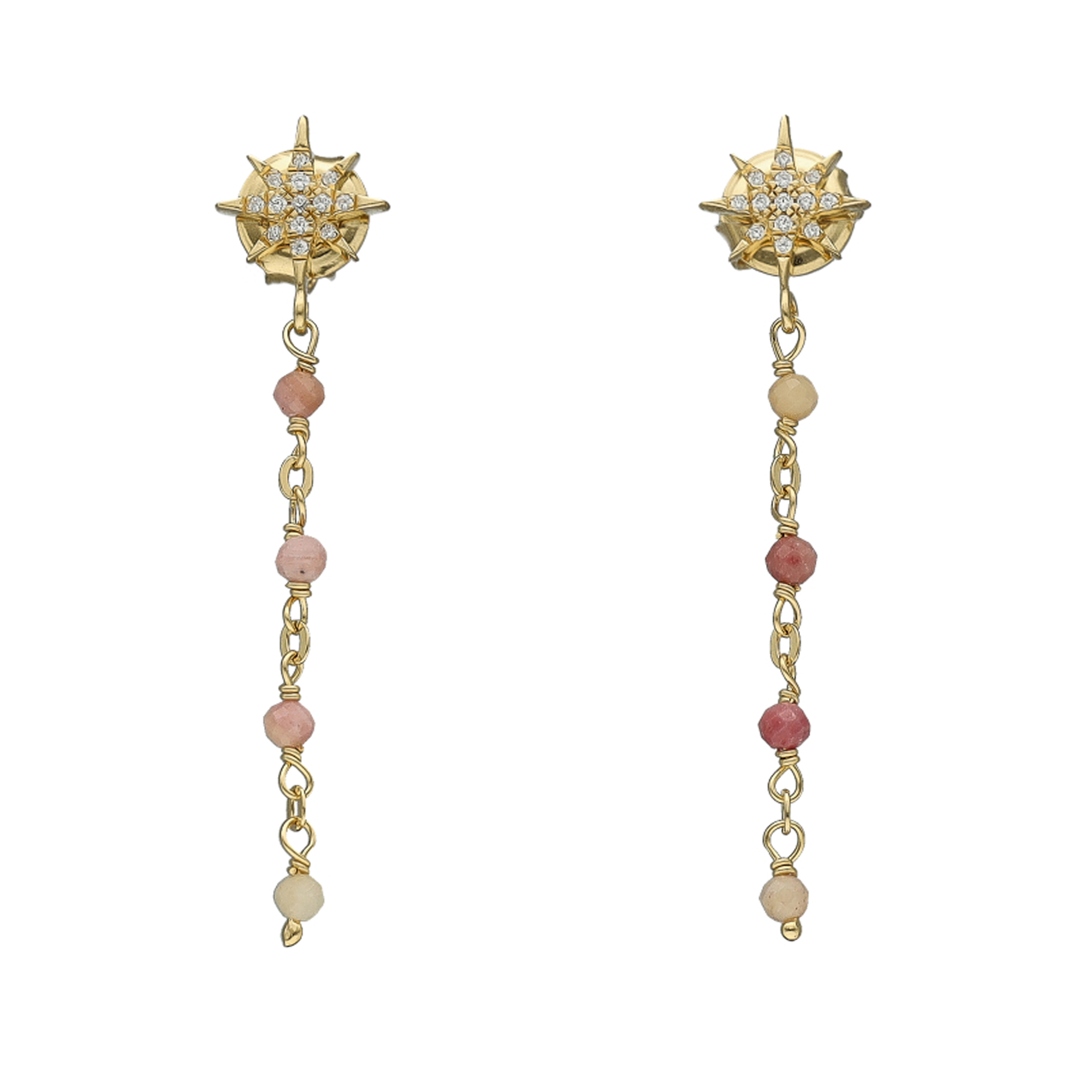 A la recherche d’un accessoire chic et tendance pour sublimer votre tenue ? Optez pour nos boucles d’oreilles argent dorée étoile, ornées de zirconium blanc et de pierres rhodonite rose. Le contraste entre la couleur rose de la pierre et le métal doré apportera une touche d’élégance et de raffinement à votre look. Fabriquées en argent 925/1000, ces boucles d’oreilles de qualité vous accompagneront dans toutes vos occasions spéciales.