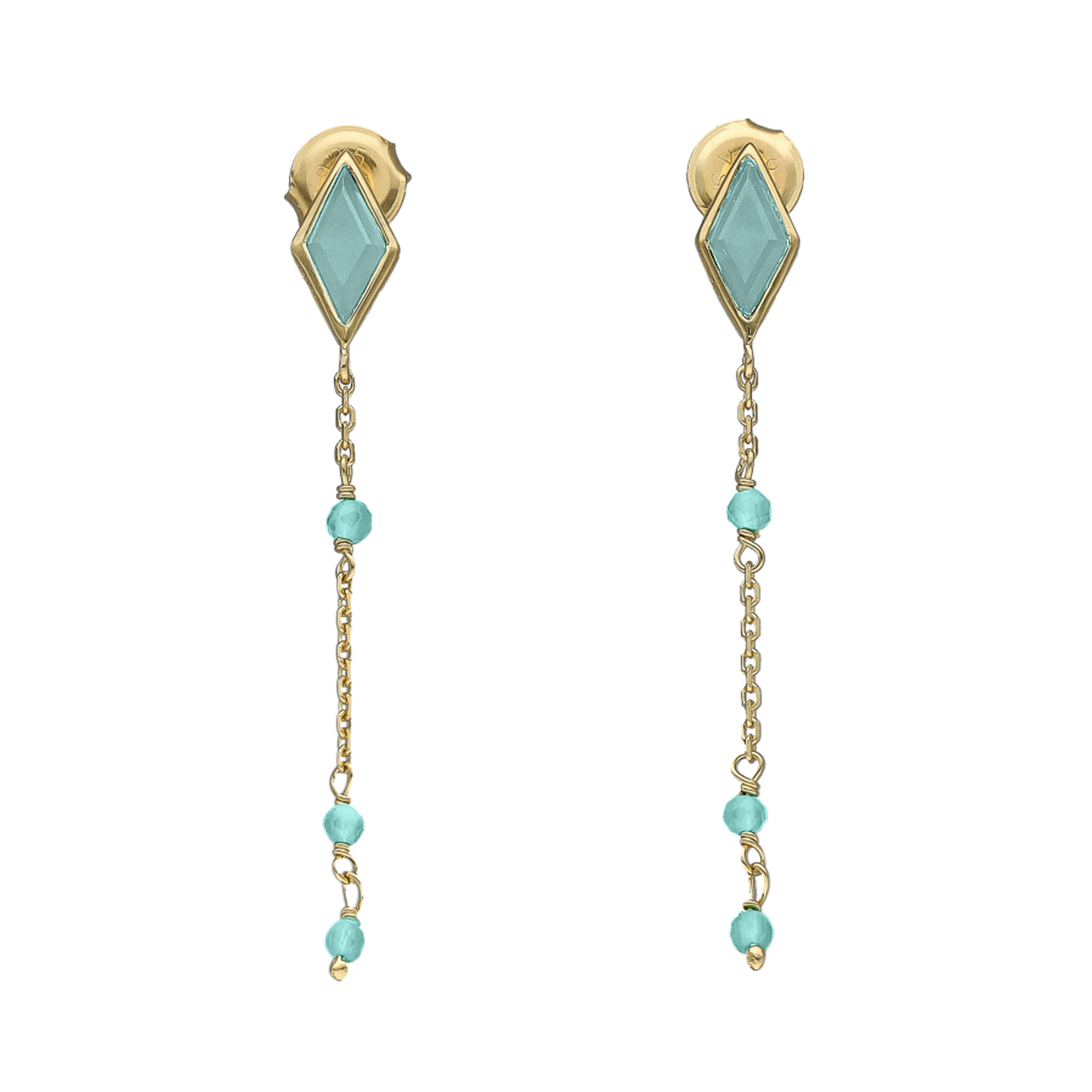 Description des boucles d’oreilles en argent doré avec pierre amazonite