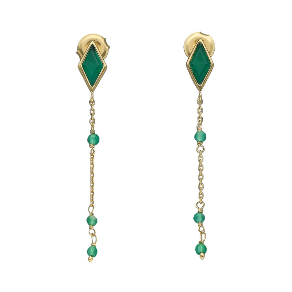 Boucles d’oreilles argent dorée losange pierre onyx vert