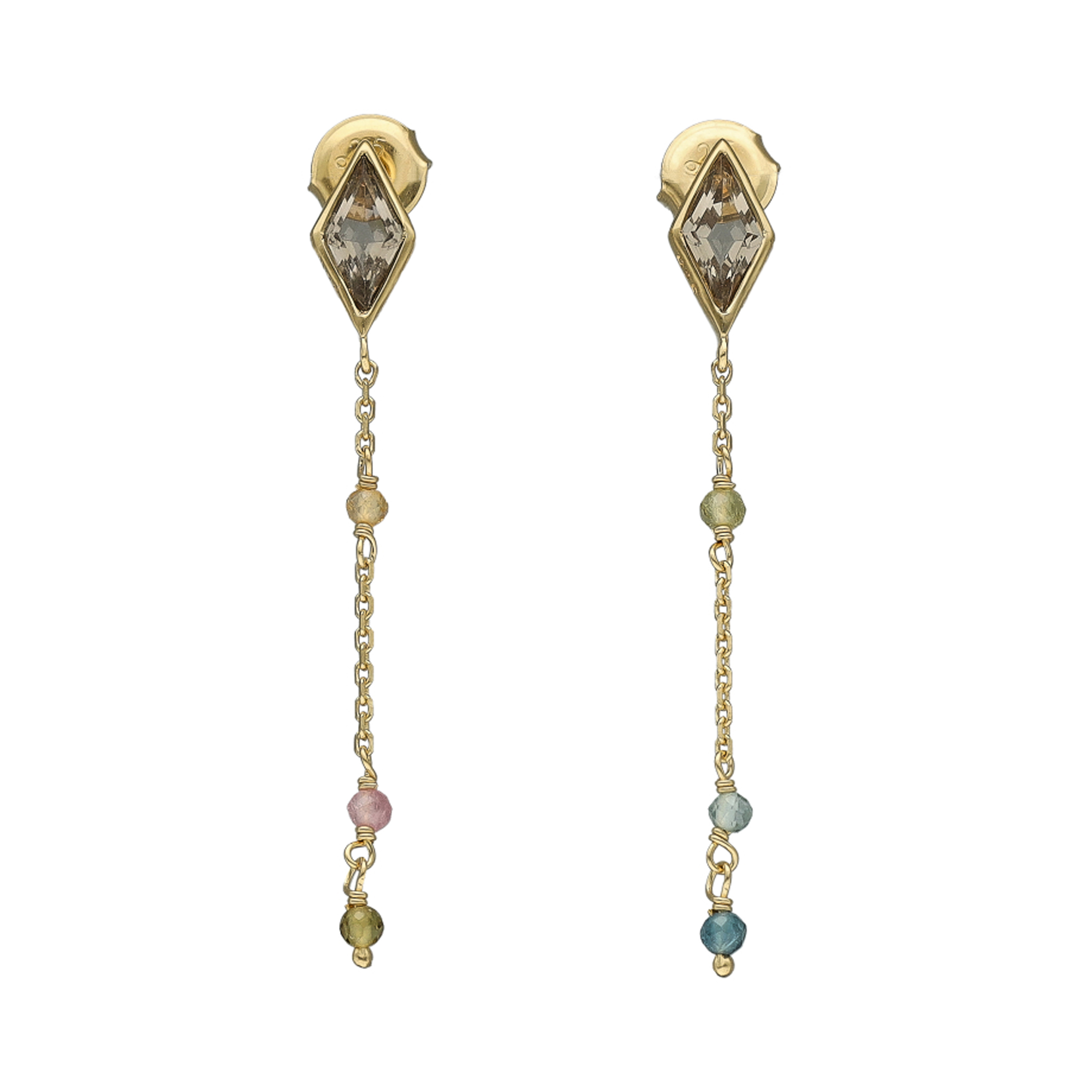 Description des boucles d’oreilles argent dorée losange pierre tourmaline