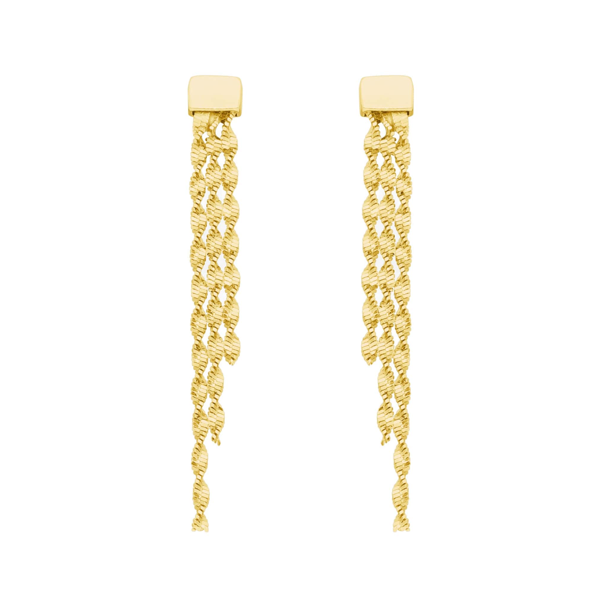 Boucles d’oreilles argent dorées triples mailles diamantées