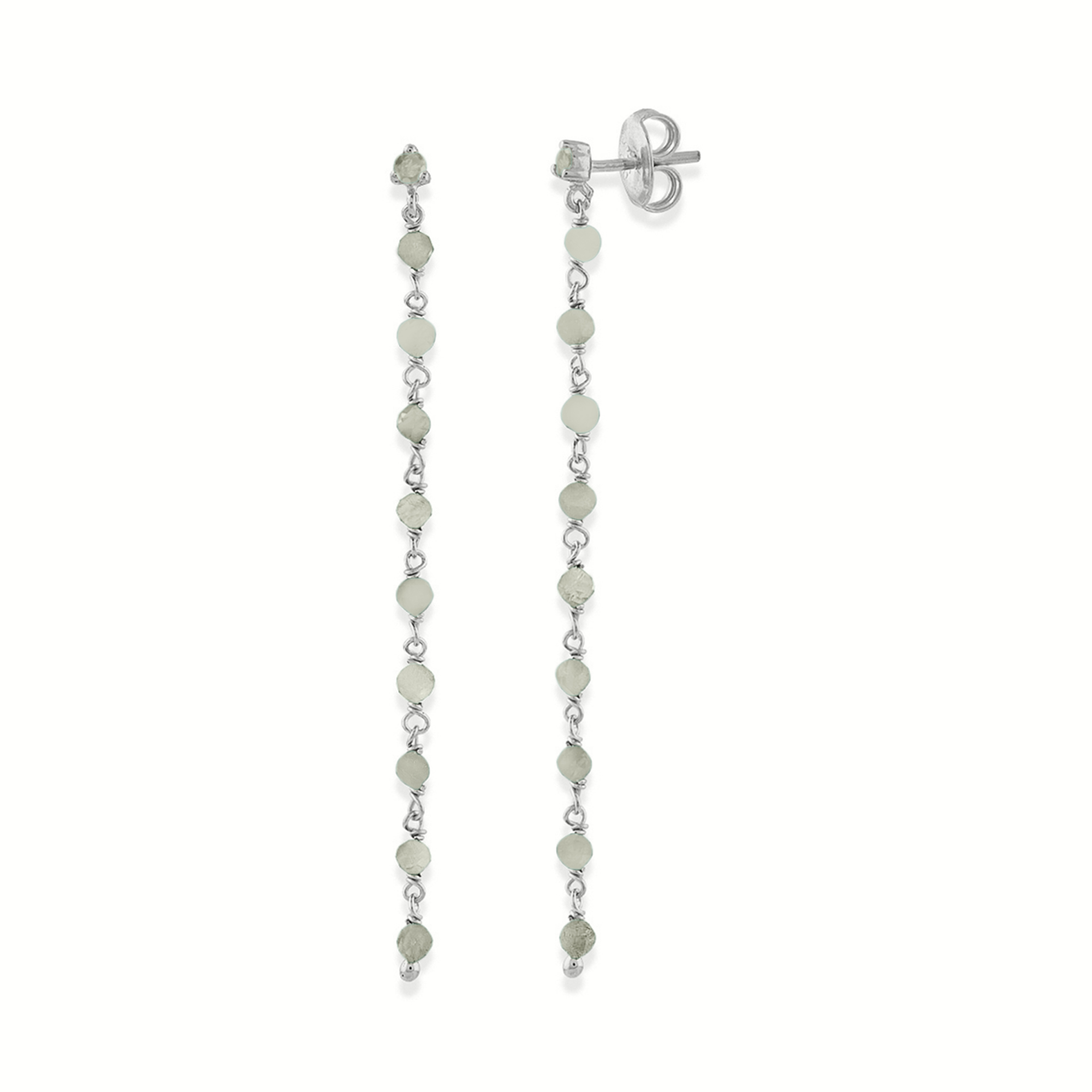 Description des boucles d’oreilles argent rhodié chaine longue et pierres labradorite