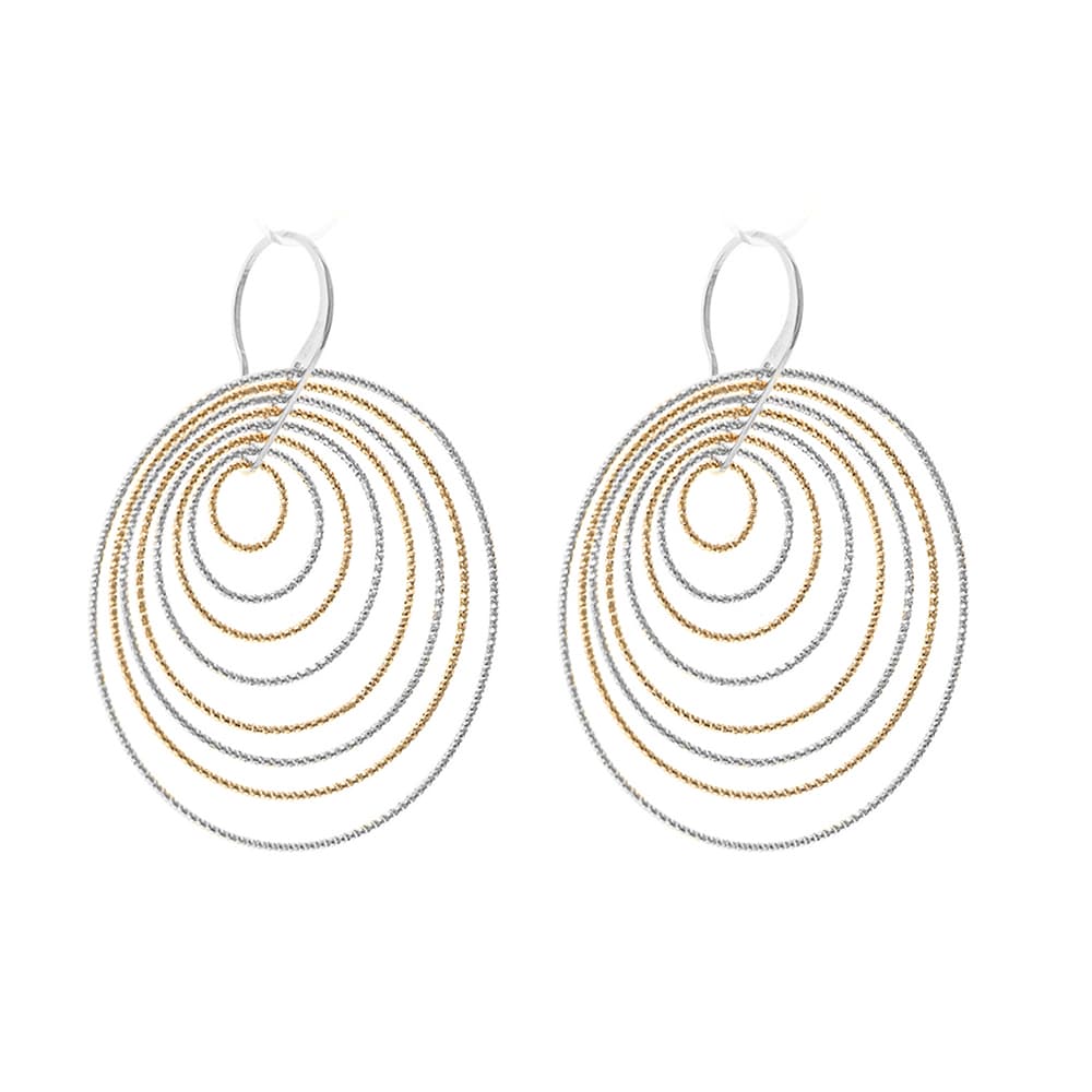 Ces boucles d’oreilles « Volupté », en argent 925 doré et rhodié dotées de plusieurs cercles de tailles différentes vous donneront une touche de romantisme et de séduction. Des boucles d’oreilles pendantes qui accompagneront toutes vos tenues !