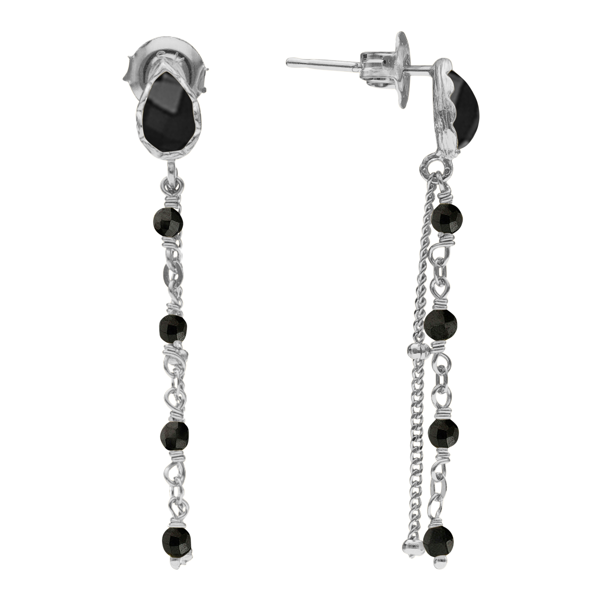 Description des boucles d’oreilles argent rhodié pendantes gouttes et pierre spinelle noire