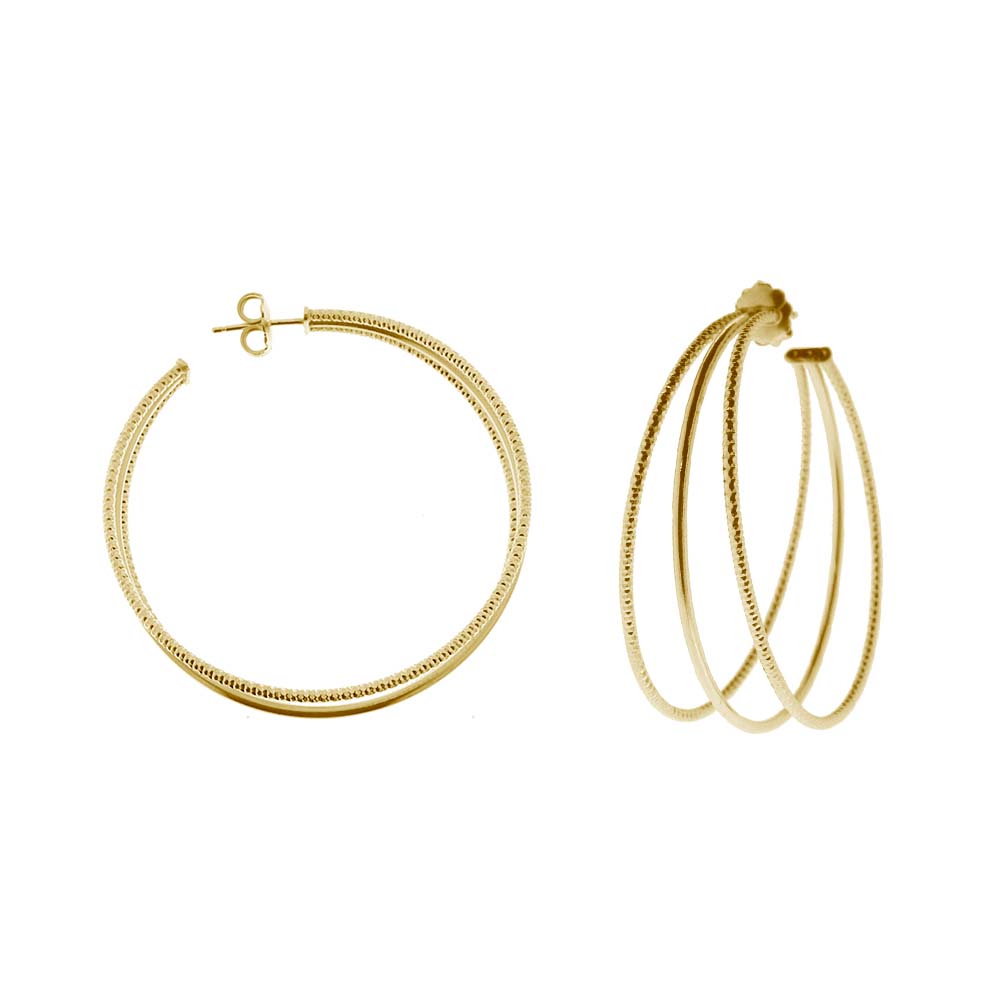 Les boucles d’oreilles créoles trois anneaux grand modèle argent doré diamantée et lisse diamètre 55mm de la Collection Spirale sont le must-have de cette saison. Leur design sophistiqué et moderne apportera une touche d’élégance à toutes vos tenues, que ce soit pour une soirée chic ou une journée décontractée. Fabriquées en argent 925/1000 de haute qualité, ces boucles d’oreilles sont à la fois légères et résistantes, pour un confort optimal tout au long de la journée.