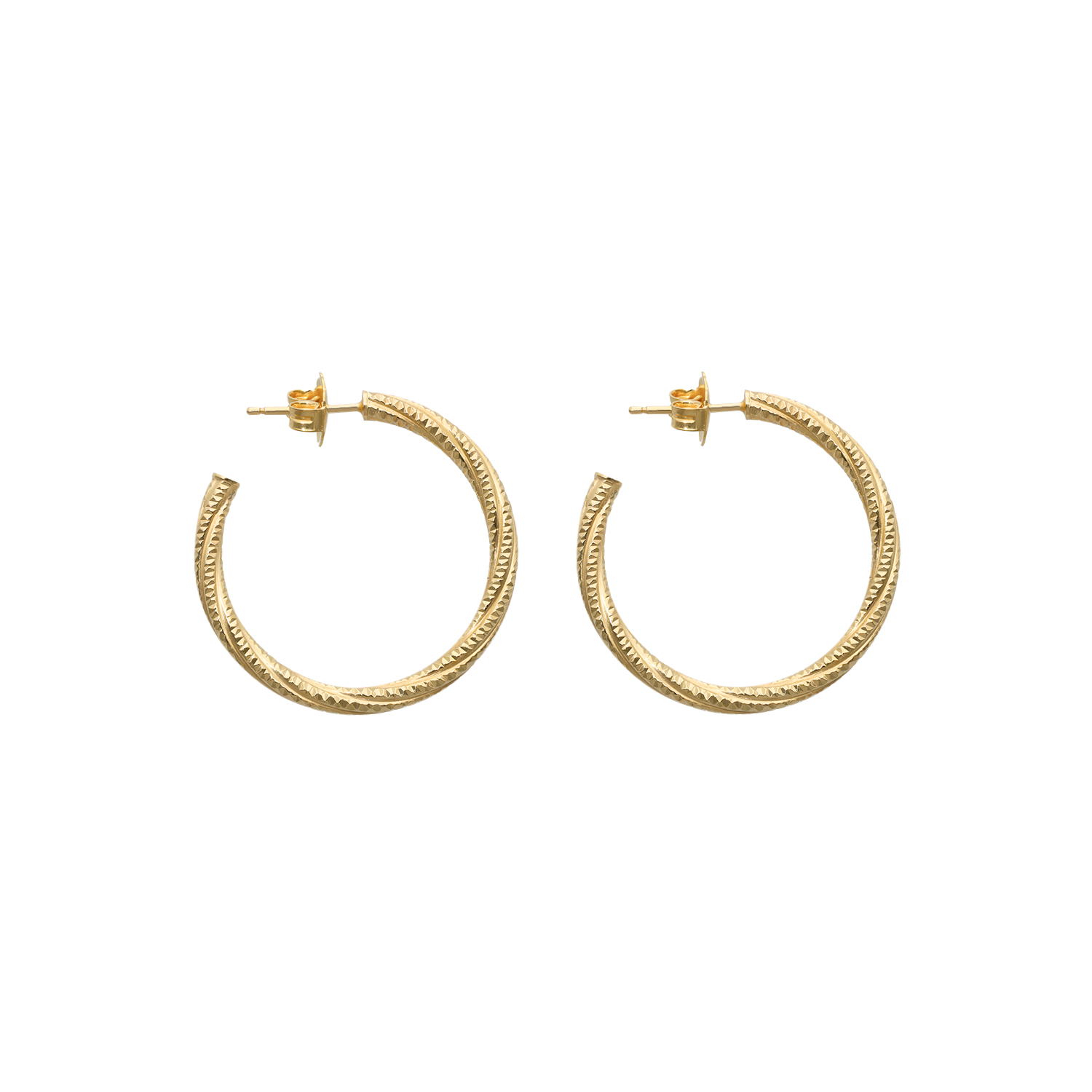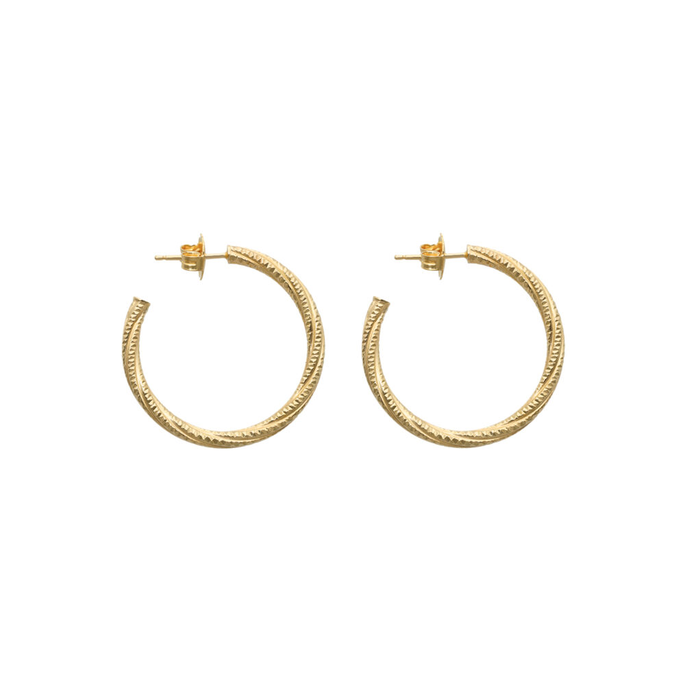 Boucles d’oreilles en argent créoles tubes torsadés petit modèle doré diamètre 25mm