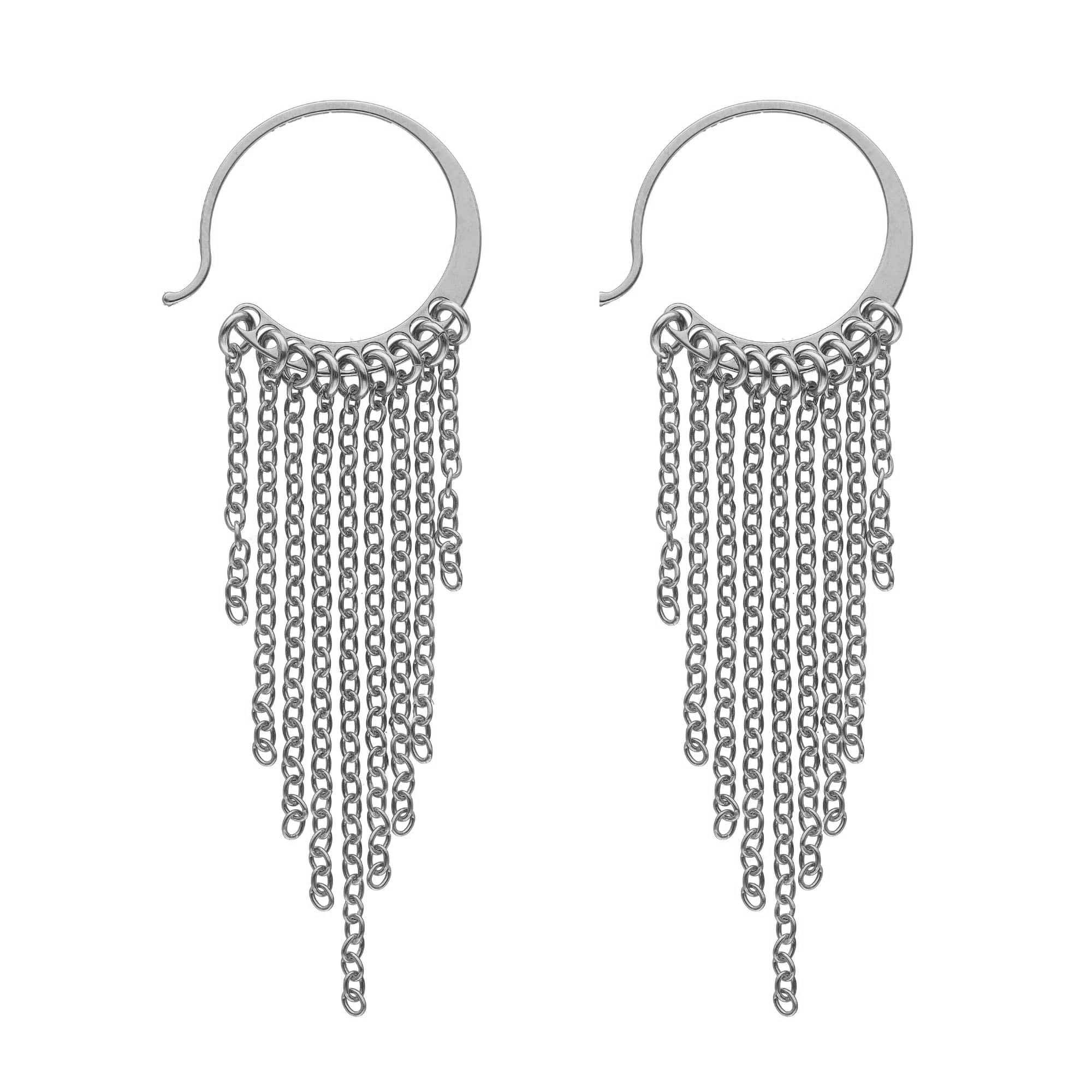 Description des boucles d’oreilles en argent rhodié cercle multichaine