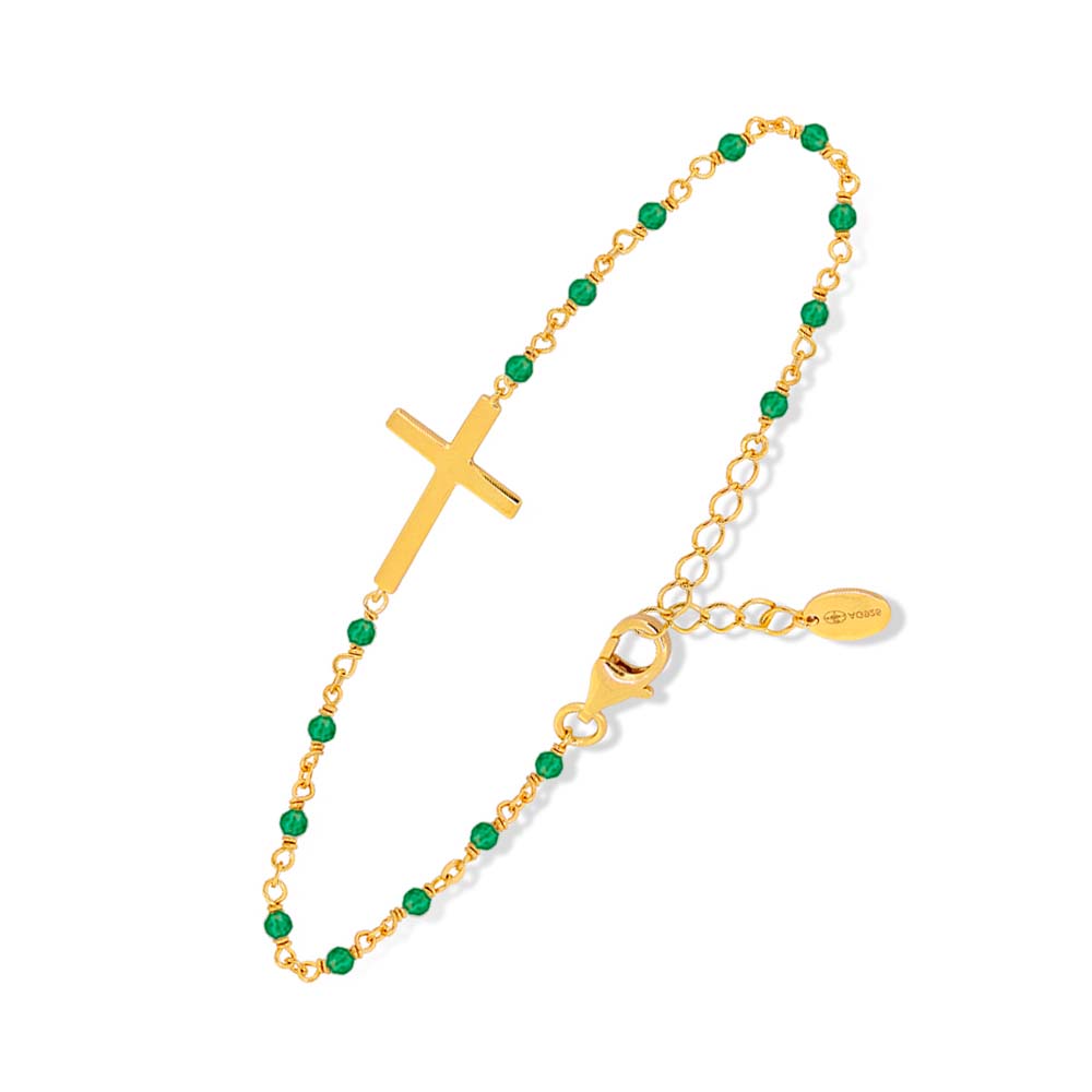 Bracelet argent doré croix et pierre onyx vert : un bijou intemporel et élégant