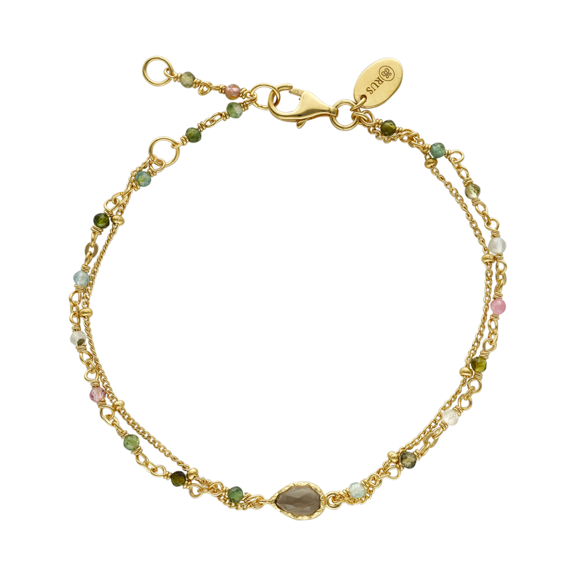 Bracelet argent doré double chaine goutte et pierre tourmaline