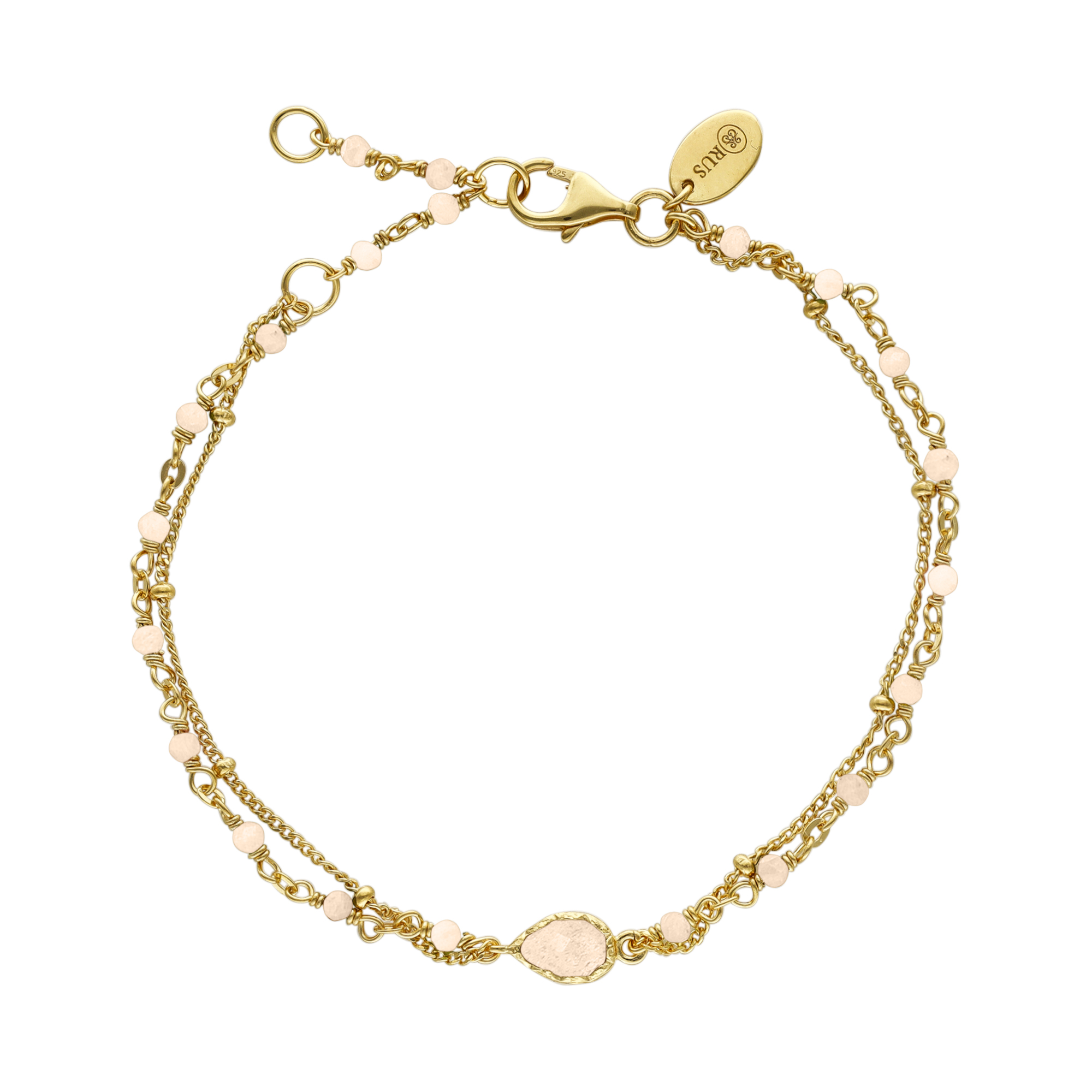 Bracelet argent doré double chaine goutte et pierres opale rose