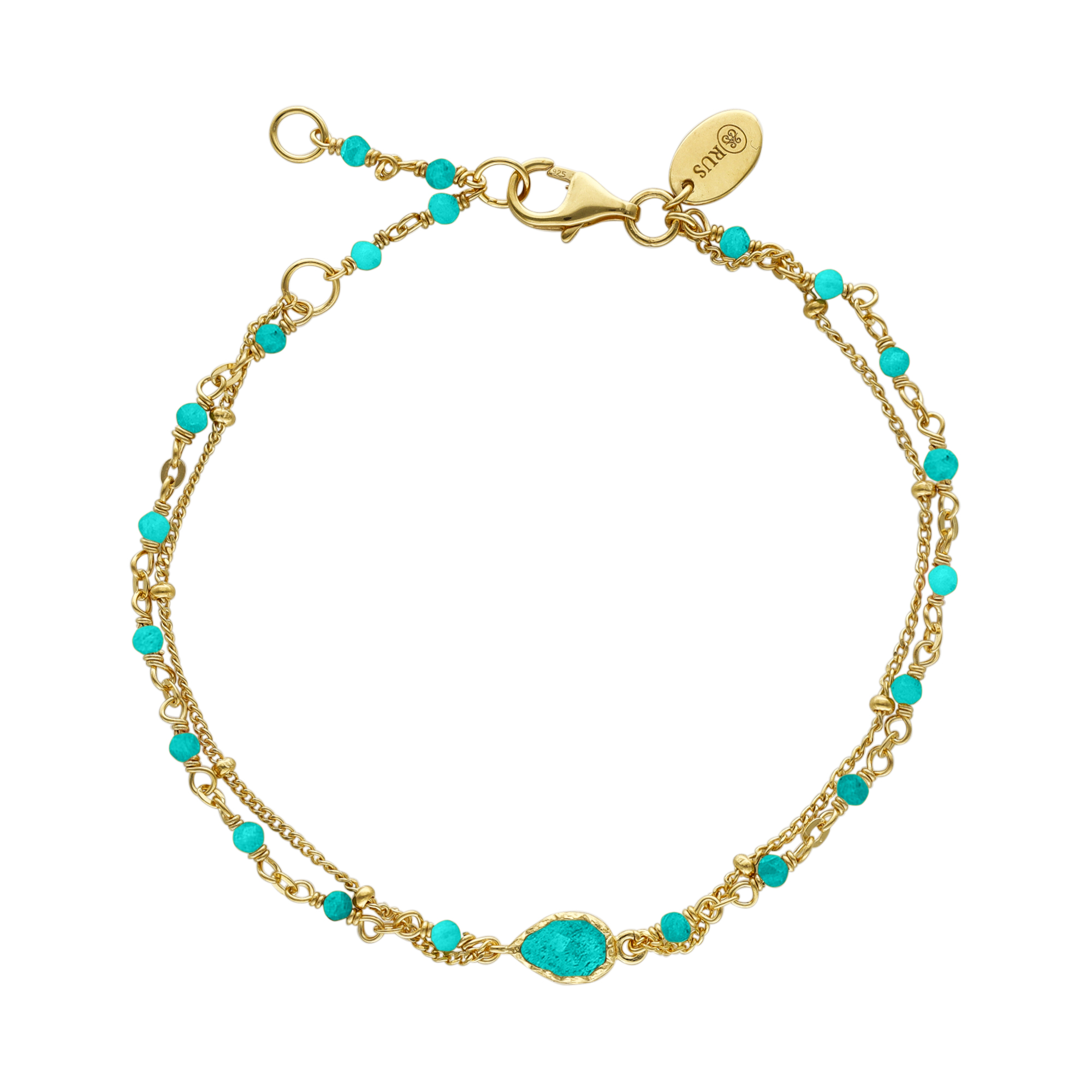 Bracelet argent doré double chaine goutte et pierres turquoise