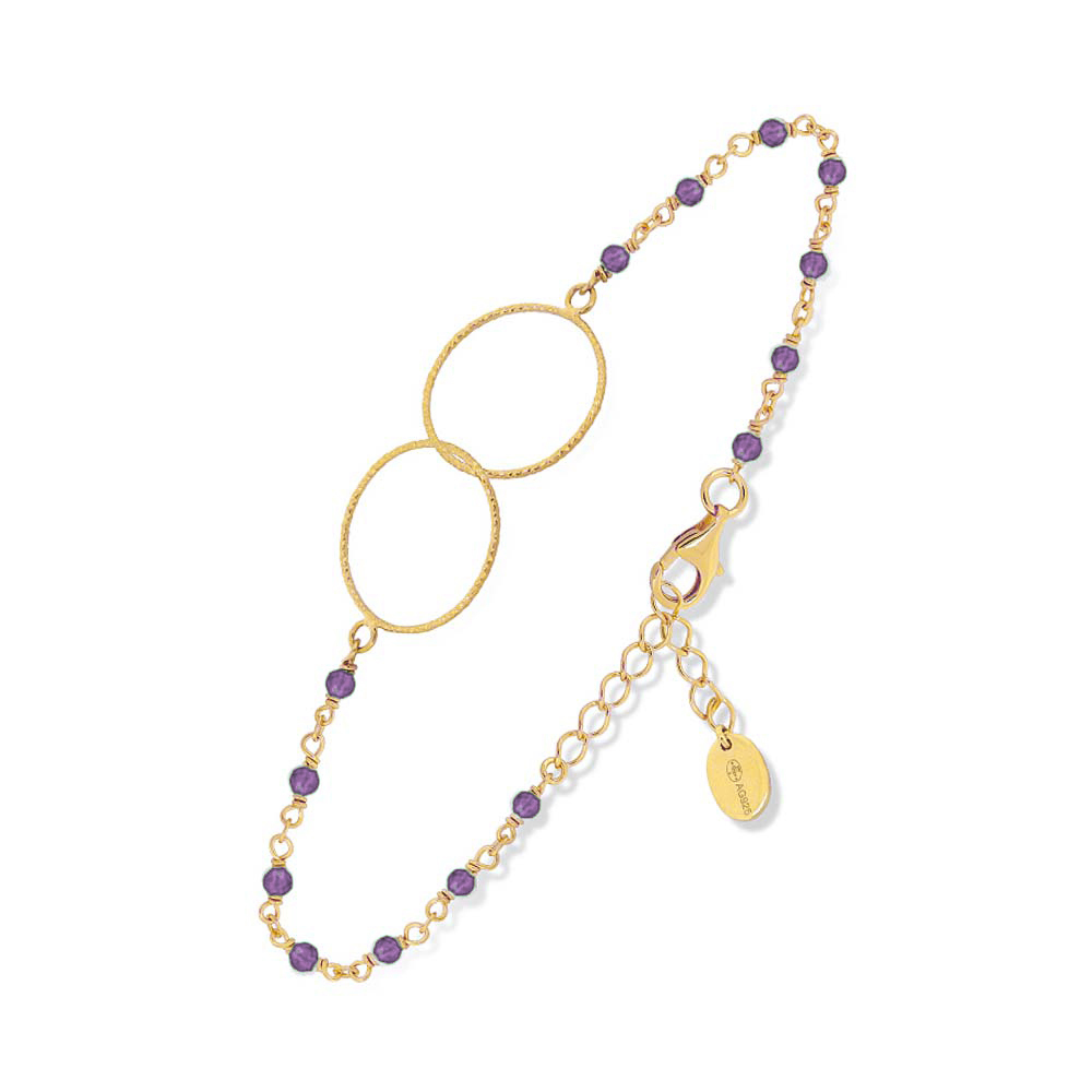 Bracelet argent doré double rond et pierre améthyste : une touche de féminité et d’élégance