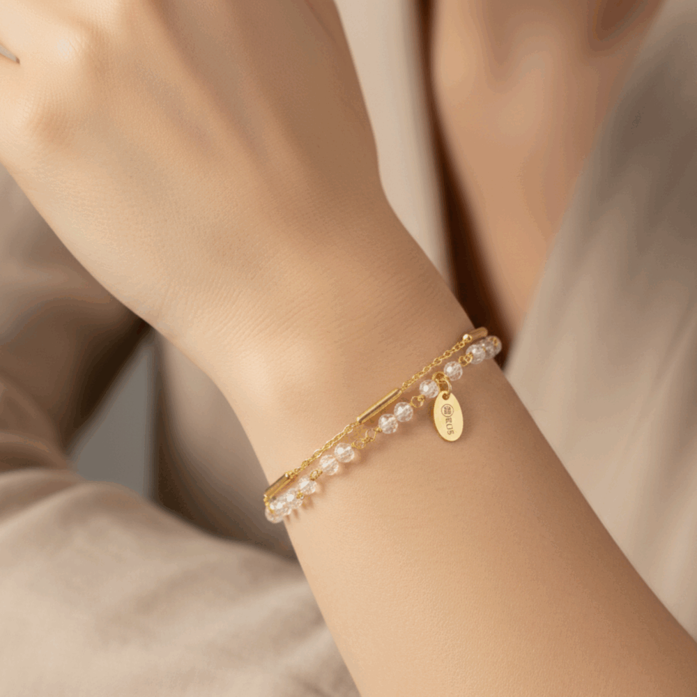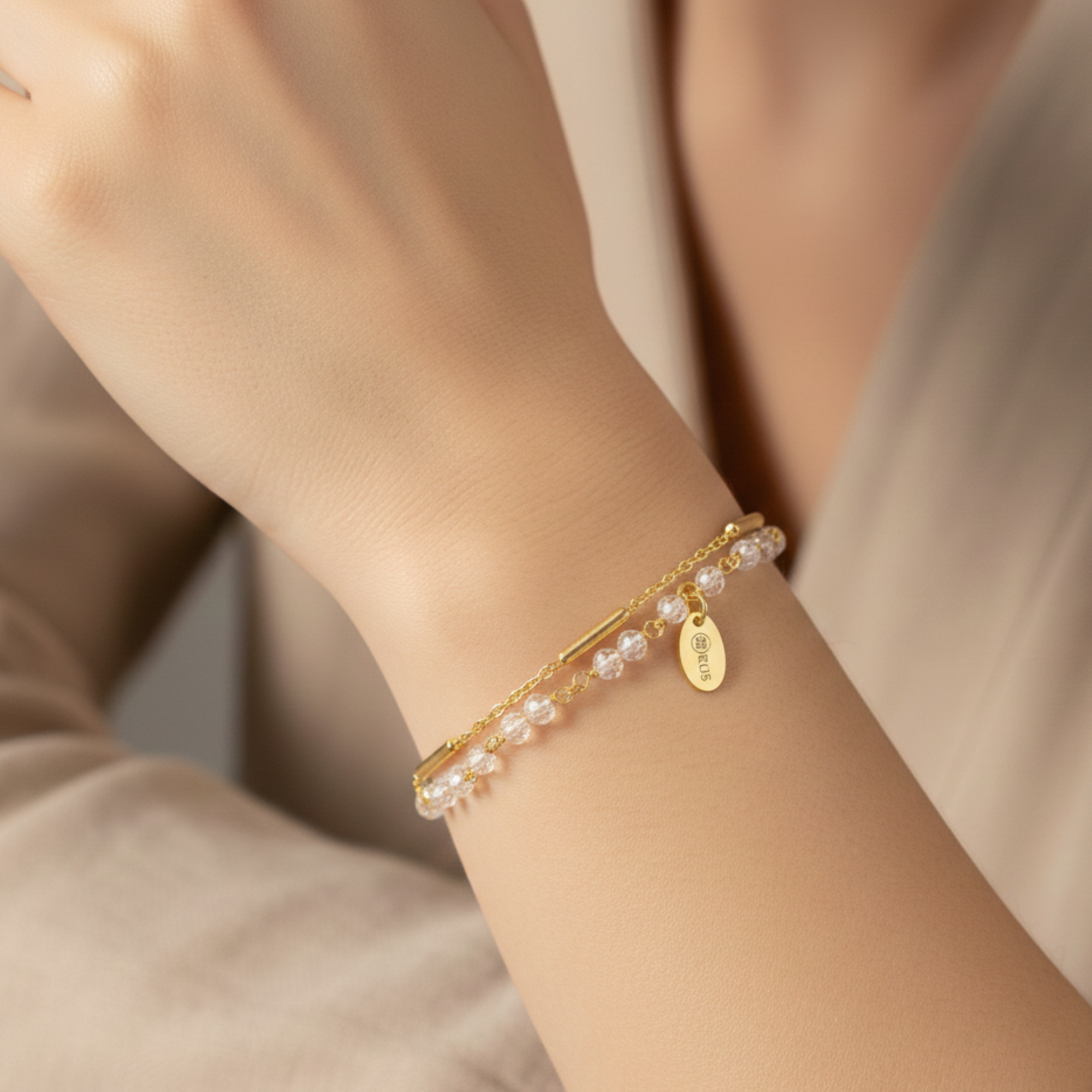 Le bracelet argent doré doubles chaines barrettes perles naturelles blanche est un bijou raffiné et élégant, parfait pour sublimer votre poignet. Sa pierre naturelle blanche apporte une touche de pureté et d’élégance à votre tenue, tandis que le métal doré ajoute une touche de glamour. Fabriqué en argent 925/1000, ce bracelet de haute qualité est un accessoire intemporel qui vous accompagnera au quotidien.
