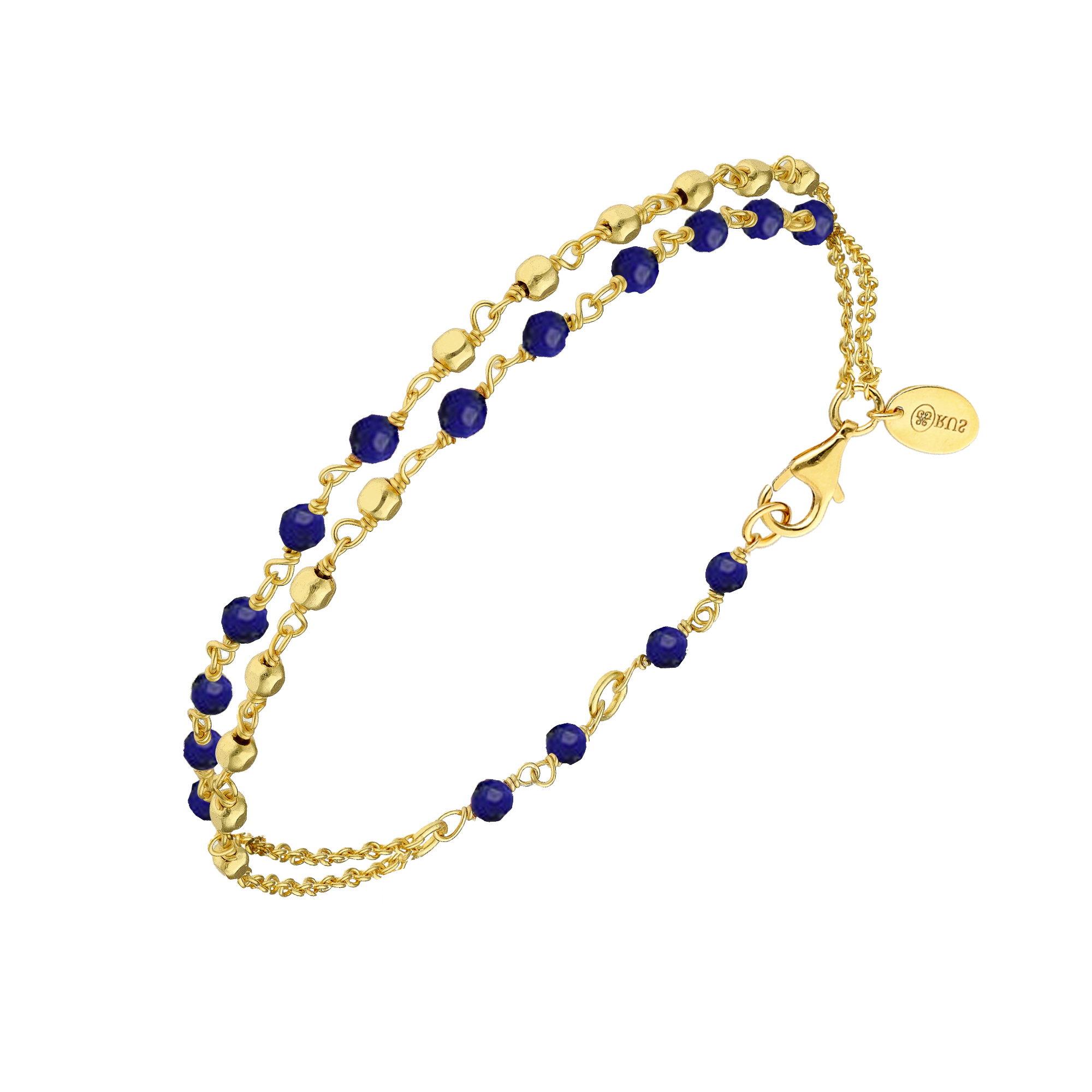 Bracelet argent doré doubles chaînes pierres Lapis Lazuli