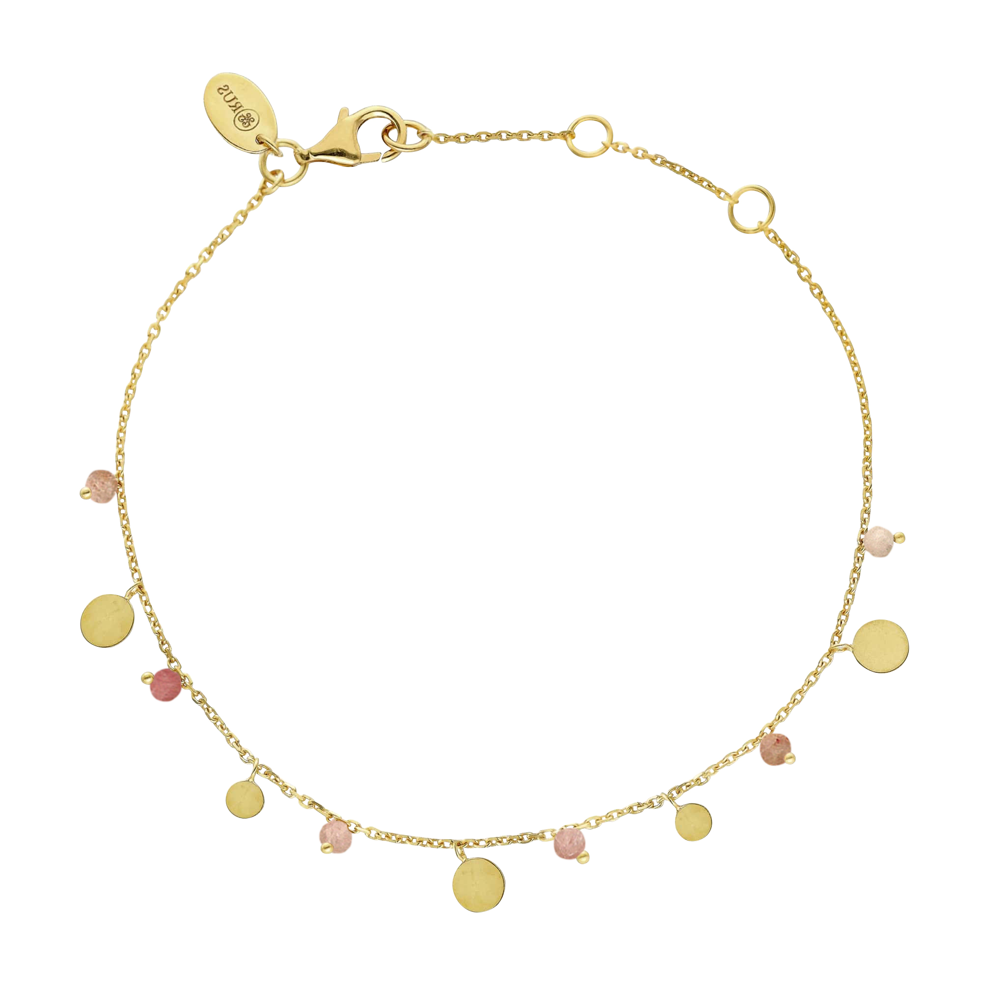 Bracelet argent doré pampilles et pierres naturelles quartz rose fraise