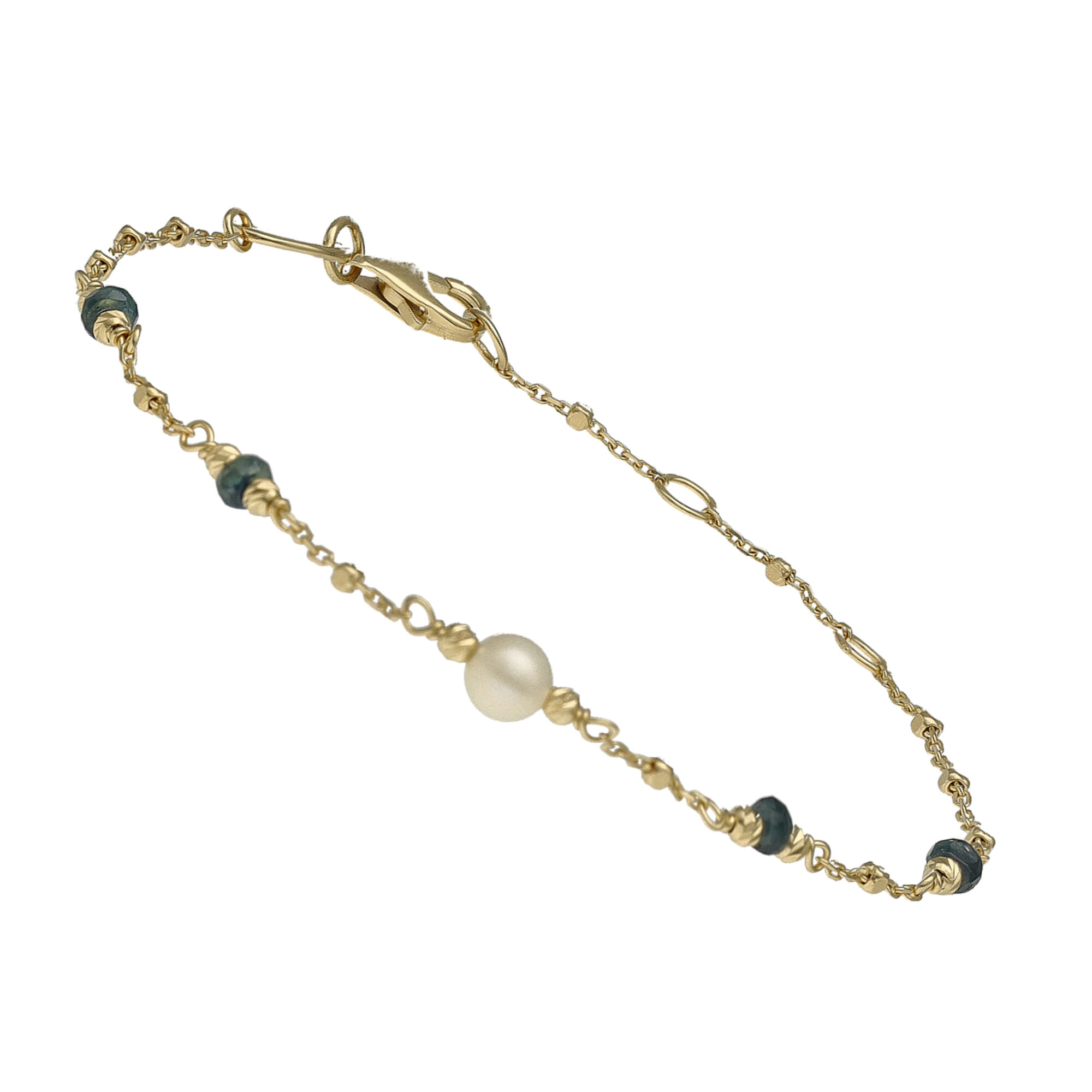 Bracelet argent doré pierres précieuses saphir véritable et perle naturelle blanche