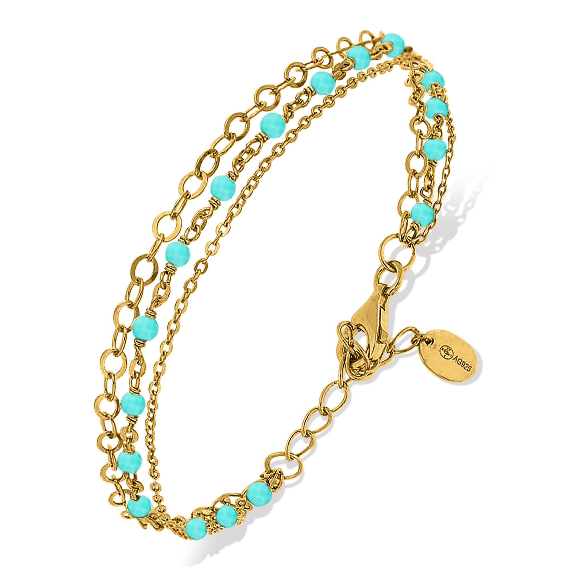 Bracelet argent doré triple chaine petite perles pierre amazonite