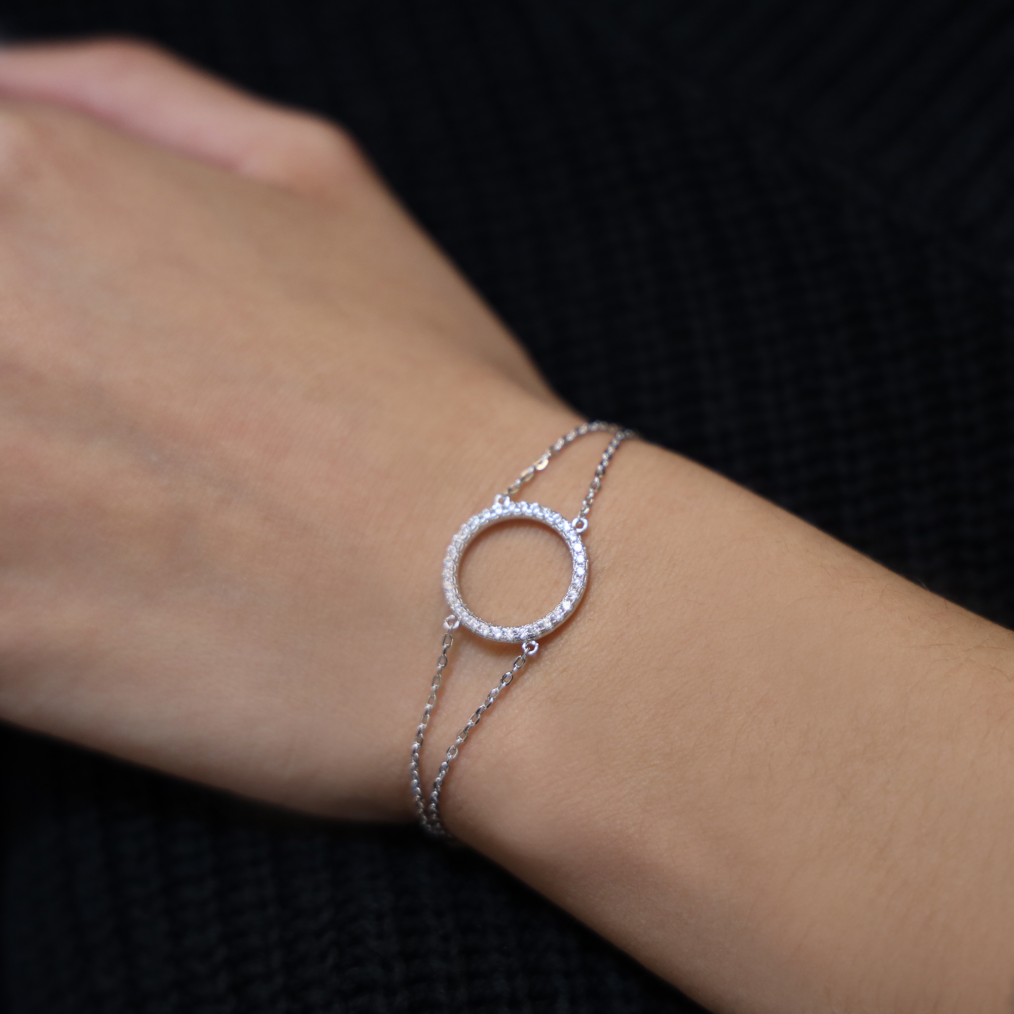 Bracelet argent rhodié cercle de vie serti : un bijou intemporel pour sublimer votre poignet