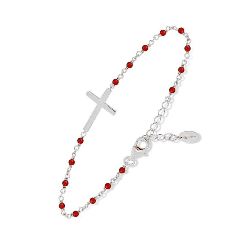 Description du Bracelet argent rhodié croix et pierre onyx rouge