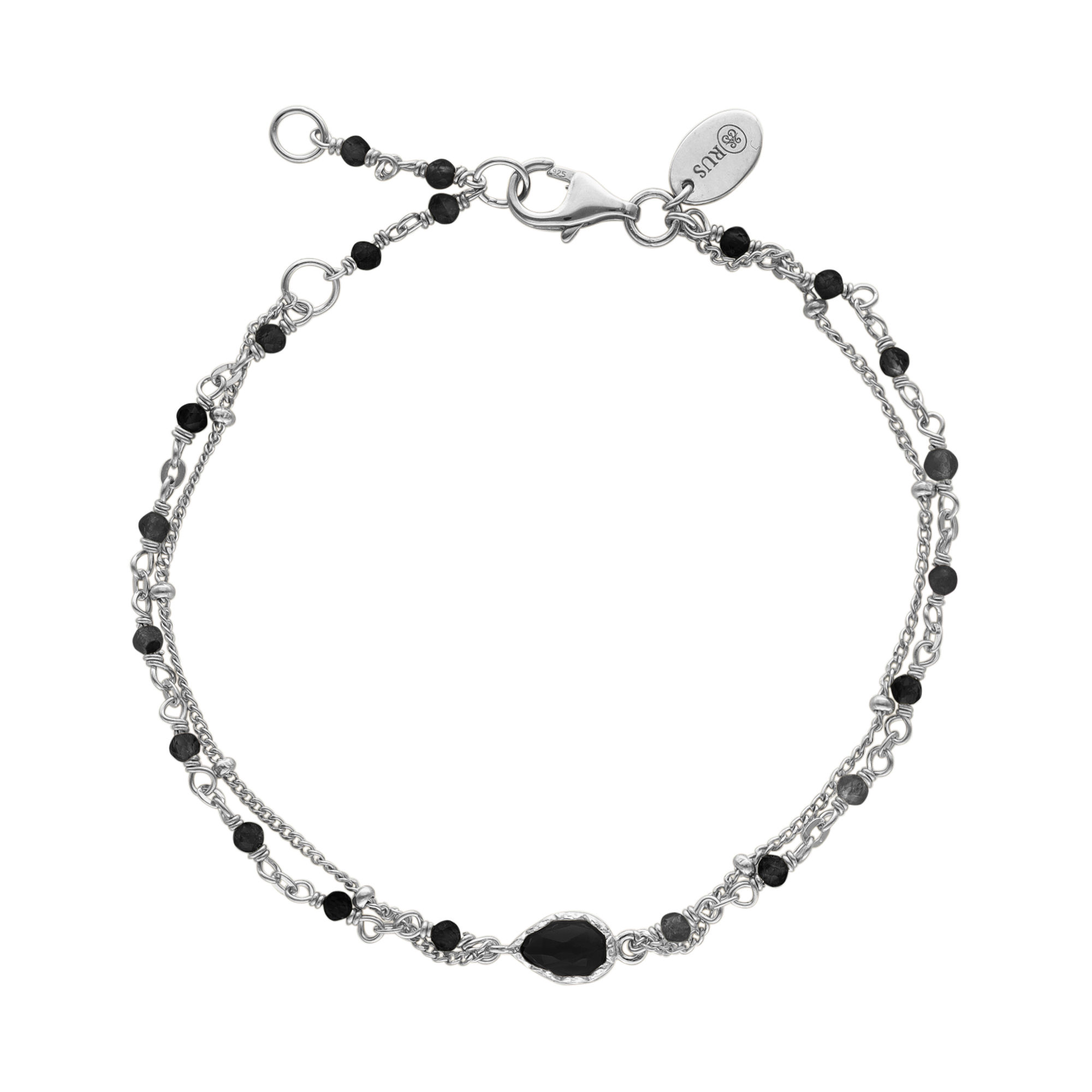 Bracelet argent rhodié double chaine goutte et pierres spinelles noires