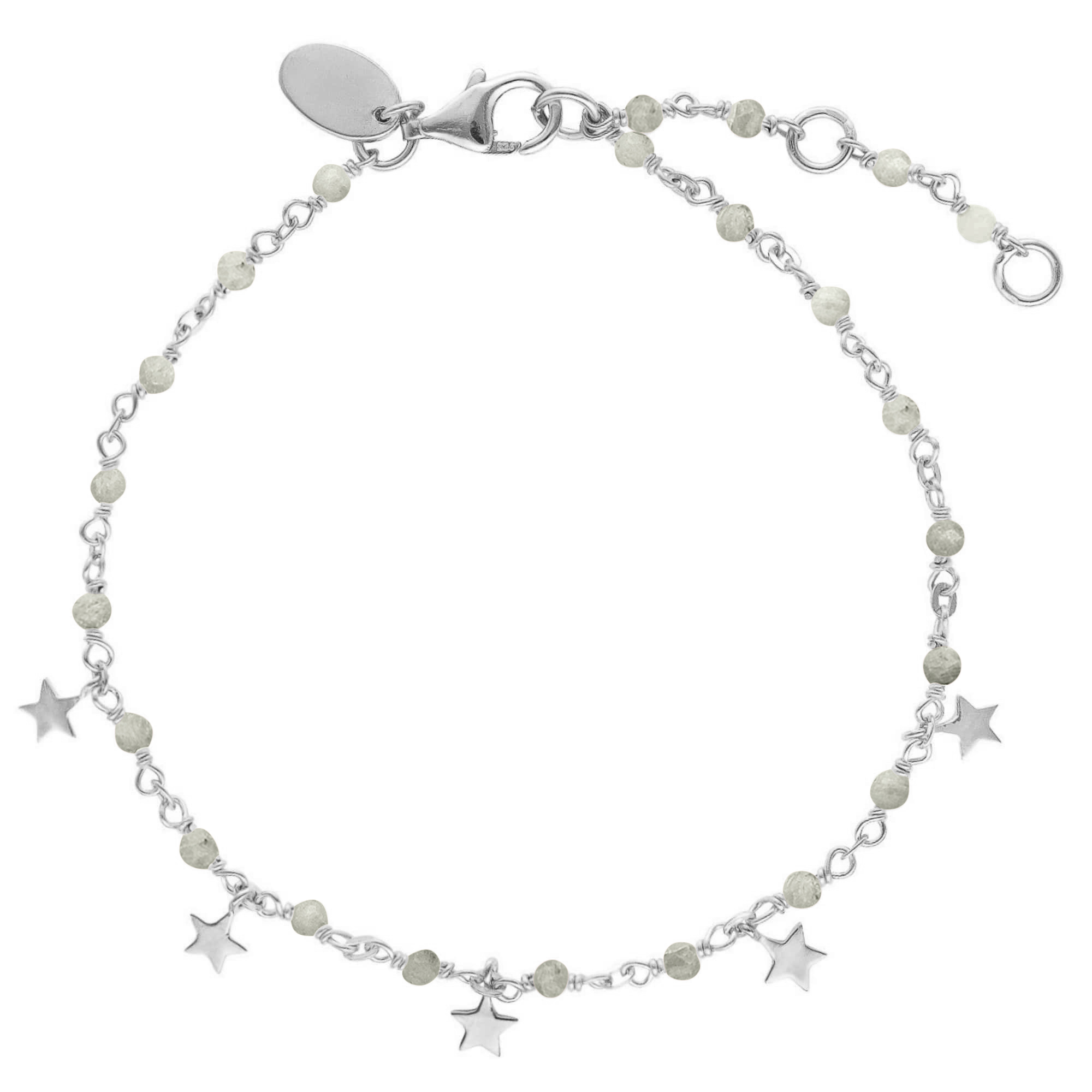 Bracelet argent rhodié étoiles pierres naturelles labradorite