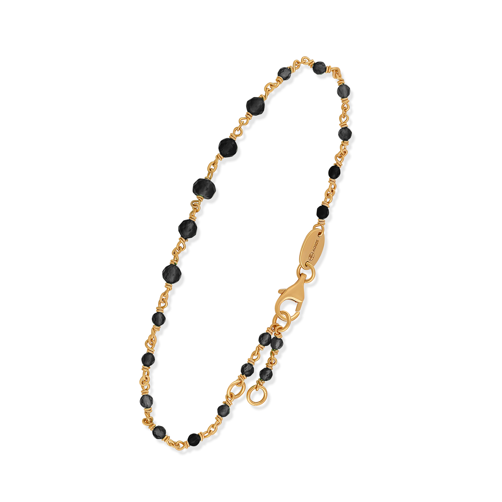 Bracelet en argent doré cascade pierre spinelle noire