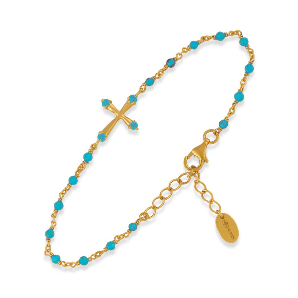 Bracelet en argent doré croix pierres naturelles turquoise